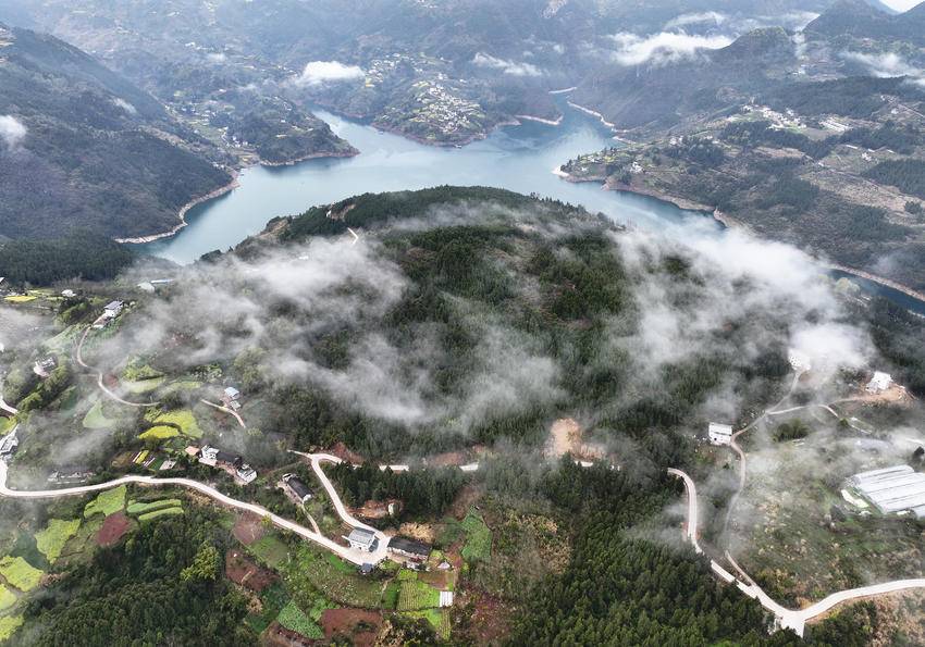 3月19日清晨,长江巴东县巫峡口云雾缠绕山腰,宛如一条洁白的玉带,串联着南北两岸的翠峰,美轮美奂,如诗如画。