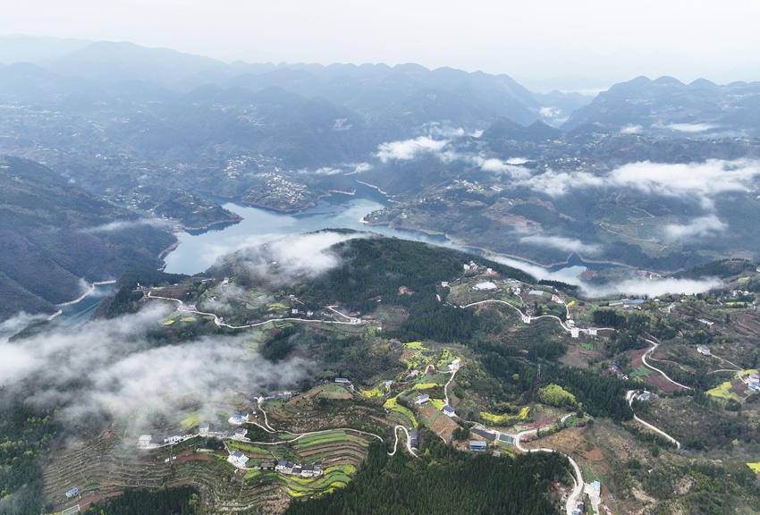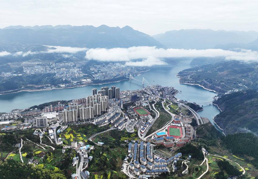 脚下是蜿蜒曲折的神农溪,国家5A级景区,全长60公里,流经西瀼口汇入长江,集长江巫峡雄、秀、险、魅于一体。溪边油菜花儿开正旺,大地像是铺上了黄金甲。溪水清澈透亮,溪中云雾妖娆,仿佛人间仙境。山间飞瀑、高岩悬棺、栈道、原始扁舟、古老村落、土家风情等元素吸人眼球,原始、古朴、自然、野趣、秘境景观和遐想空间,更是让游客纷至沓来探幽、打卡、流连忘返。