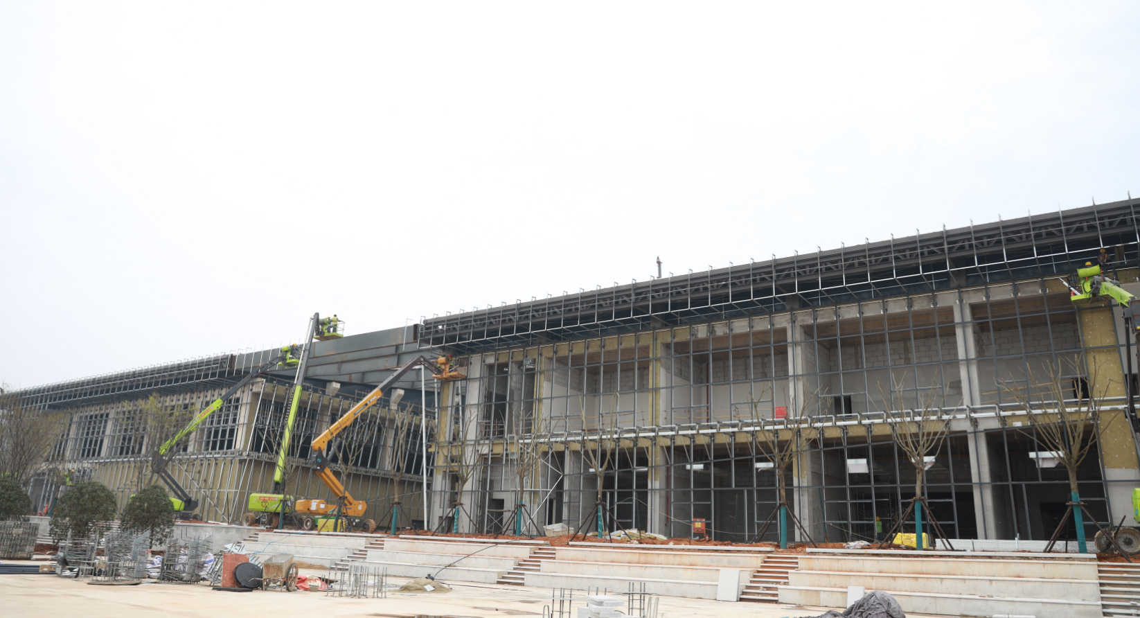 在项目现场,记者看到两座现代化的场馆已经拔地而起,整个项目已经进入装饰装修的关键阶段。这里塔吊林立、机器轰鸣,工人们正在各自点位上有序作业,一派热火朝天的建设景象。