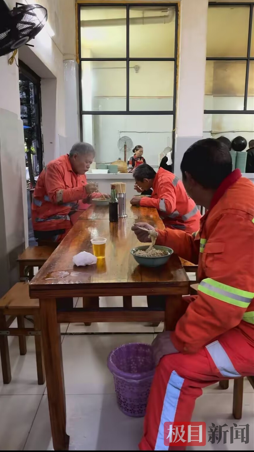 “顾客50多岁年纪,光顾面馆已有20多年。人很低调,有时连着来好几天,有时一个月也看不见人。”吴启春也从心底感谢这位老顾客,现在每天来吃面的环卫工有50多人,成为店里稳定的客源。