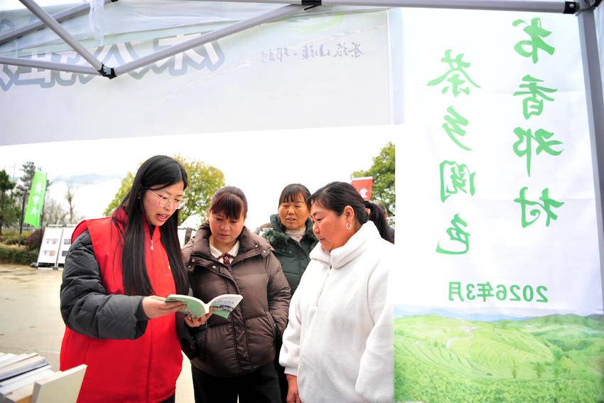 本次活动将全民阅读元素融入春茶开园仪式,现场不仅弥漫着沁人的书香,处处还散发着春茶的清香。在邓村乡春茶开园暨欧标茶园建设启动仪式上,杨家湾村10余户茶农获得“邓村乡欧标茶园建设示范户”称号。这些示范户中既有党员,也有积极响应统防统治号召的普通茶农。在前期的茶园冬季管理中,他们深耕细作,以标准守护品质,用匠心培育好茶,成为全体茶农学习的榜样。