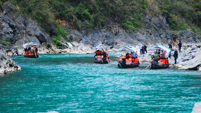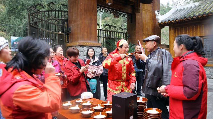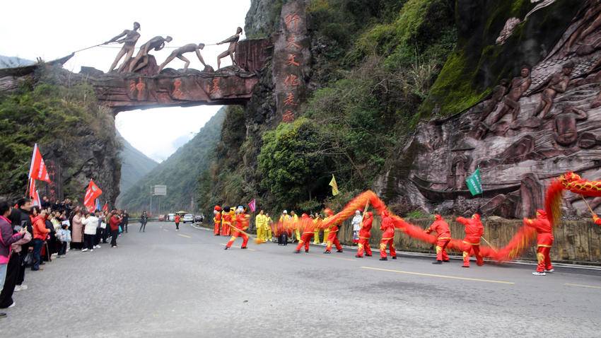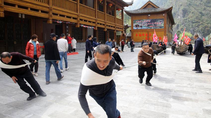 游客们沿着古老纤道徒步溯溪,沉浸式感受纤夫文化的厚重底蕴;在拉旱船互动区,大家化身“临时纤夫”,伴着“嘿咗、嘿咗”的粗犷号子奋力协作,真切体会峡江纤夫坚韧不拔的精神;摔碗酒环节更是将气氛推向高潮,一碗碗美酒下肚、瓷碗摔碎,清脆声响承载着“岁岁平安”的美好祈愿,尽显巴东民俗的豪迈洒脱。舞龙、堂戏、非遗民俗展演轮番上阵,传统技艺与峡江风光完美融合,让游客在赏春景、游山水的同时,深度解锁巴东非遗魅力。