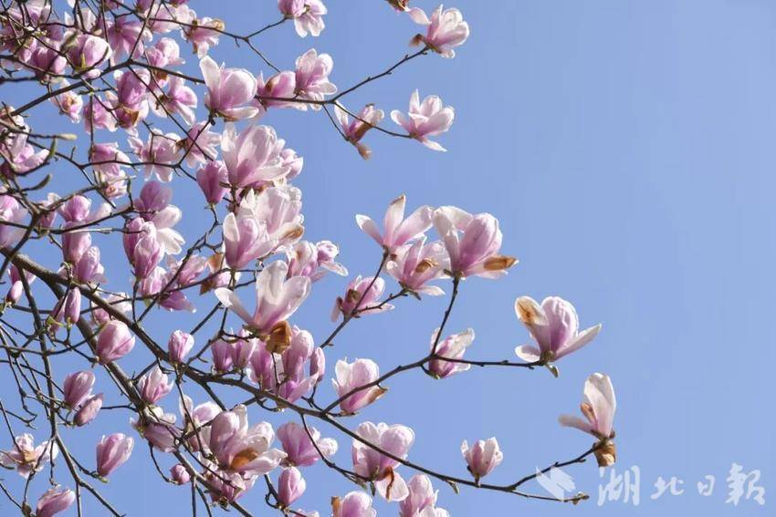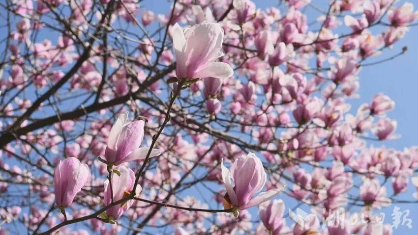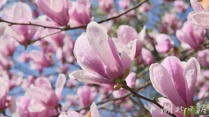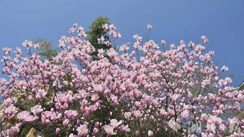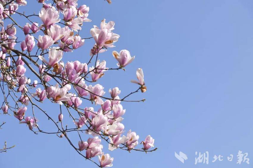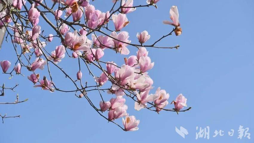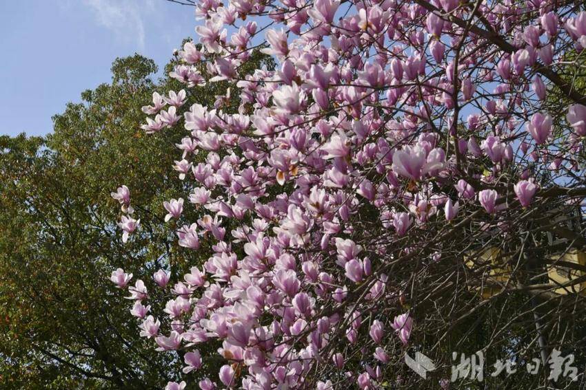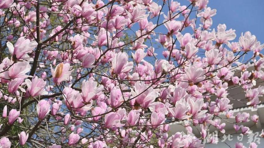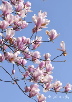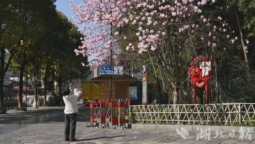 宣恩县城内的玉兰花率先绽放。