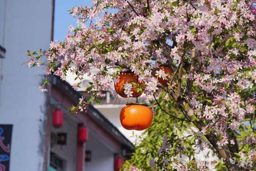县城风情街街头的海棠花