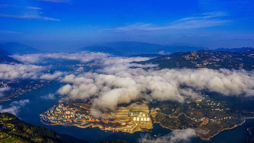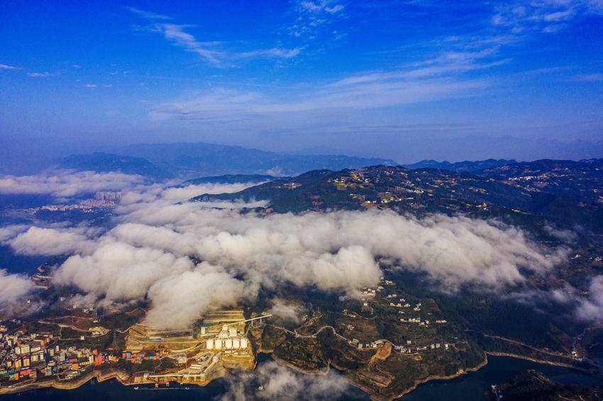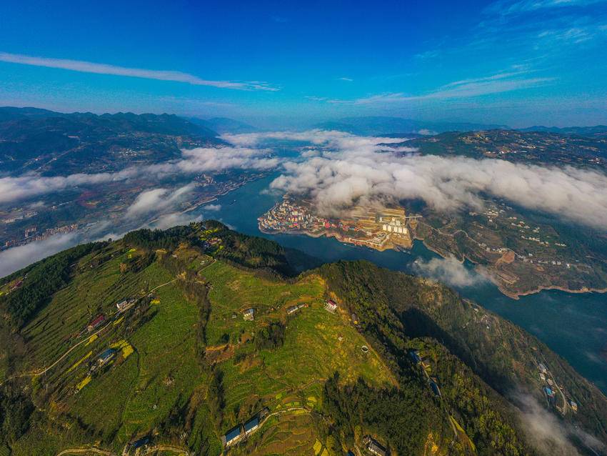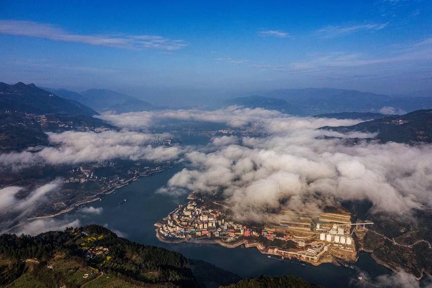 巴东县三峡移民新城,长江岸边数万亩优质晚熟柑橘,与云海交替涌现,时而露出橙黄,时而白纱拂面,一次次变换着半遮半掩的容颜。远山如黛,近岭含烟,三峡平湖中的巴东,犹如梦幻般的一幅幅丹青画卷,为天地添彩,为长江作画。