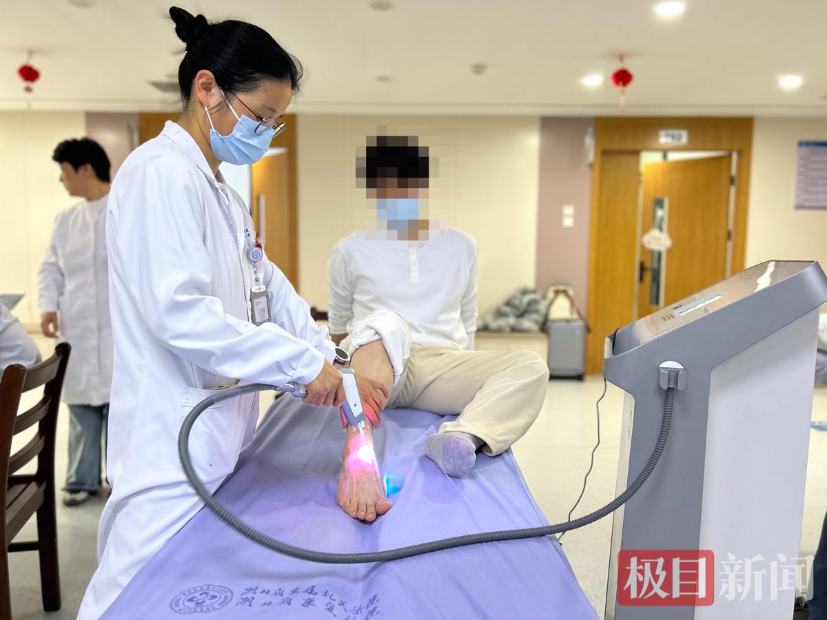2026年3月23日,武汉马拉松赛后24小时,27岁的小陈便来到湖北省康复医院(湖北省直属机关医院)康复治疗部做赛后的康复。今年1月中签全马后,他一直坚持周末训练。但比赛当天,当他跑到16公里时,便出现体力不支的状况,在队友鼓励下,他咬牙完成比赛。赛后,小陈双腿肌肉紧张僵硬,双膝关节酸痛,足底与跟腱疼痛。
