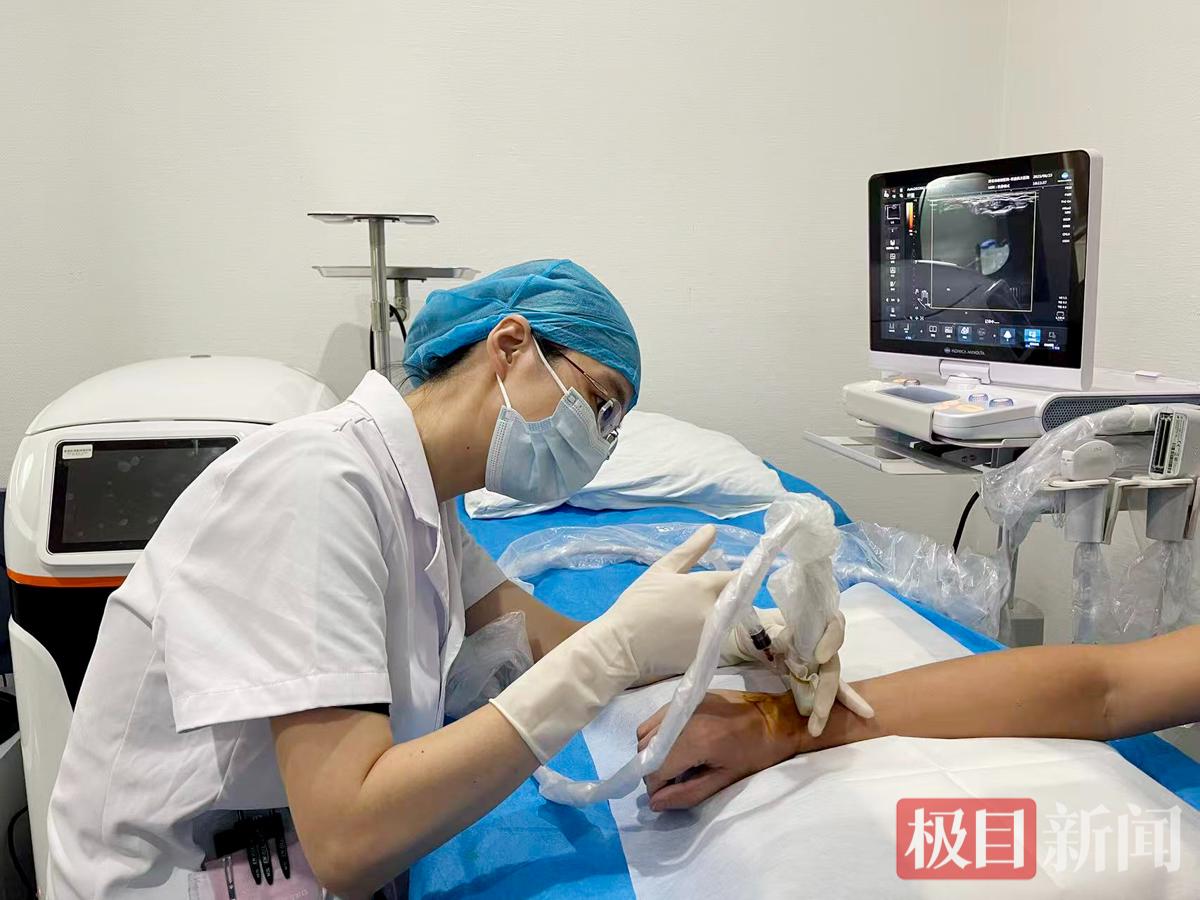 PRP治疗中,李婧从患者自身血浆中提取出血小板,并在超声引导下完成注射治疗