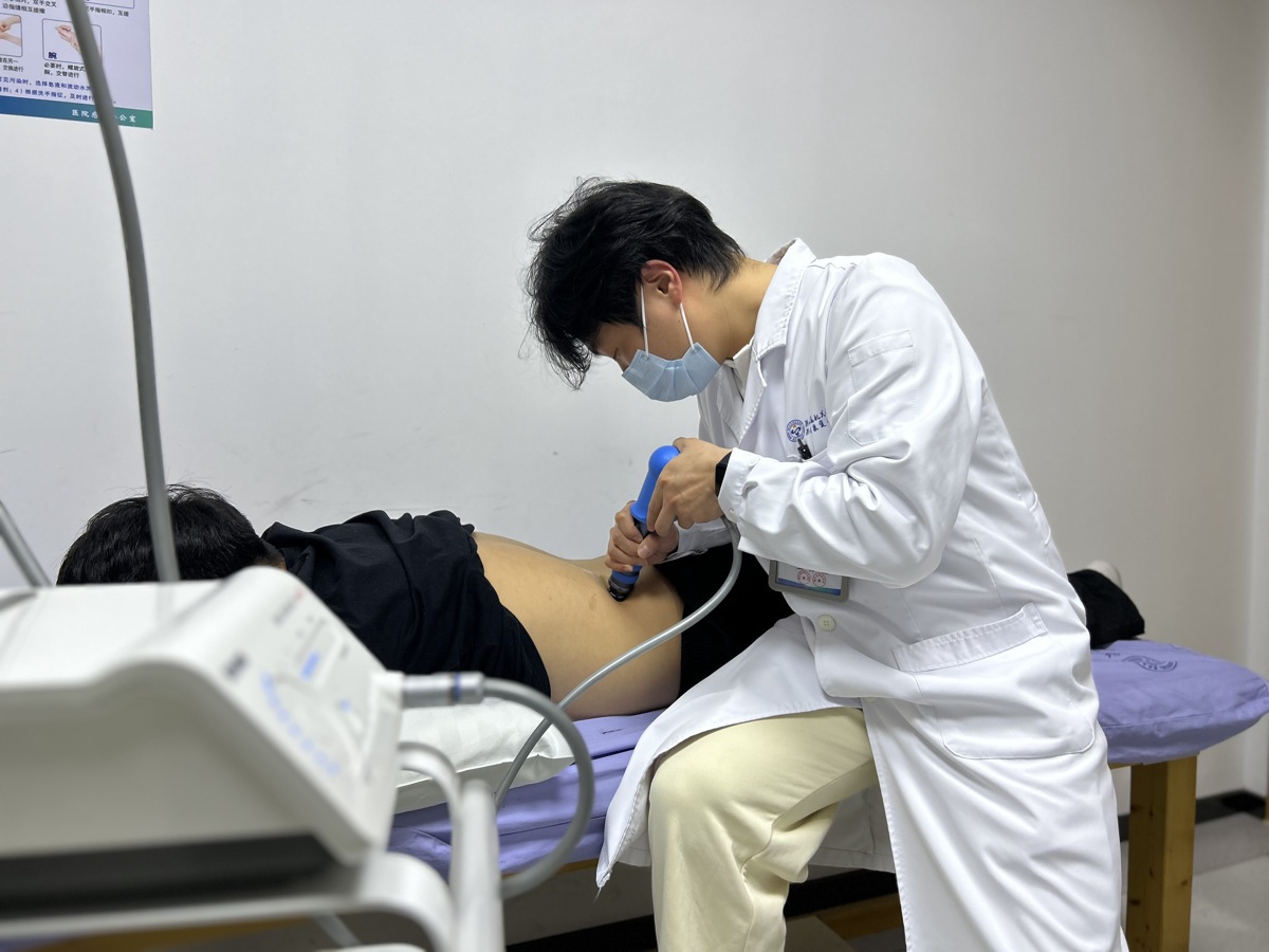 首先,利用深层肌肉刺激仪对臀、腿部关键肌群进行10-15分钟放松,通过高频、稳定的震动,直达肌肉深层,重点覆盖臀大肌、股四头肌、阔筋膜张肌、腘绳肌、小腿三头肌,让僵硬、发紧的肌肉快速“松解”;随后,对相应肌群进行10分钟柔和缓慢的拉伸;紧接着对双侧跟腱部位各进行10分钟超声波治疗,最后对双侧膝关节进行10分钟微波治疗。