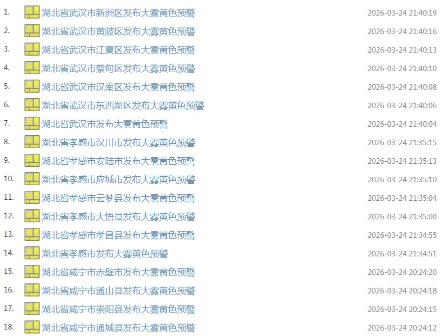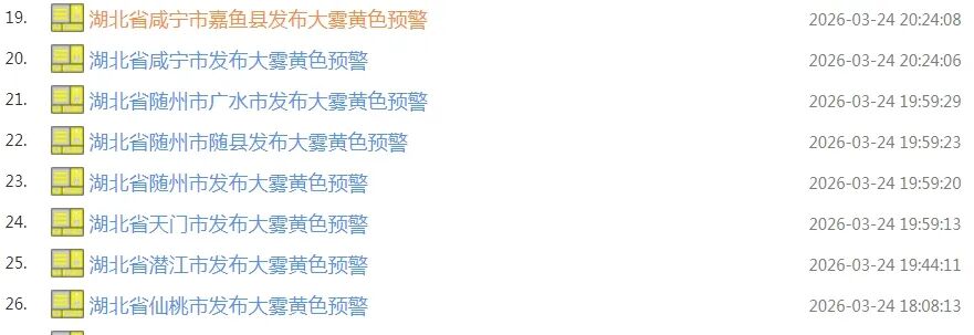 预计3月24日夜间至3月25日上午,除十堰、神农架外,湖北大部分地区将出现能见度小于500米、局地小于200米的雾,请注意防范。