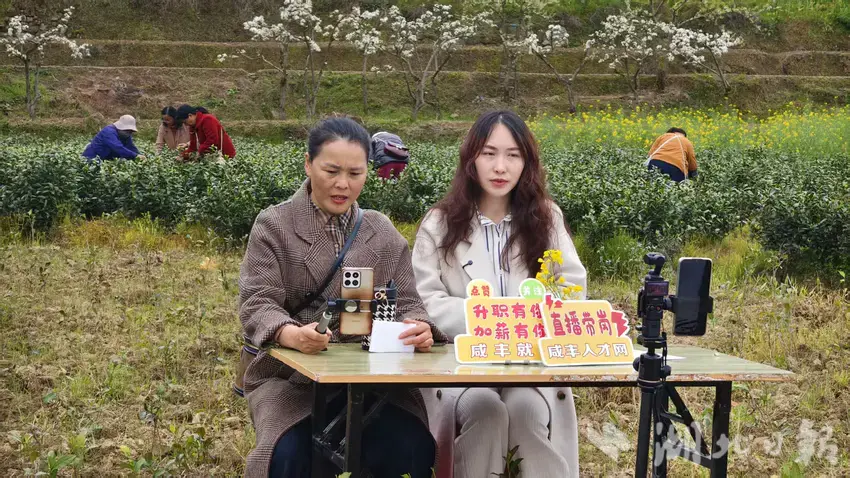 湖北日报客户端讯(通讯员李林蔚、张迪、覃嶺)3月24日,2026年咸丰县“春风行动”暨就业援助季直播带岗活动第四场走进大路坝区谭家坪村茶园基地。