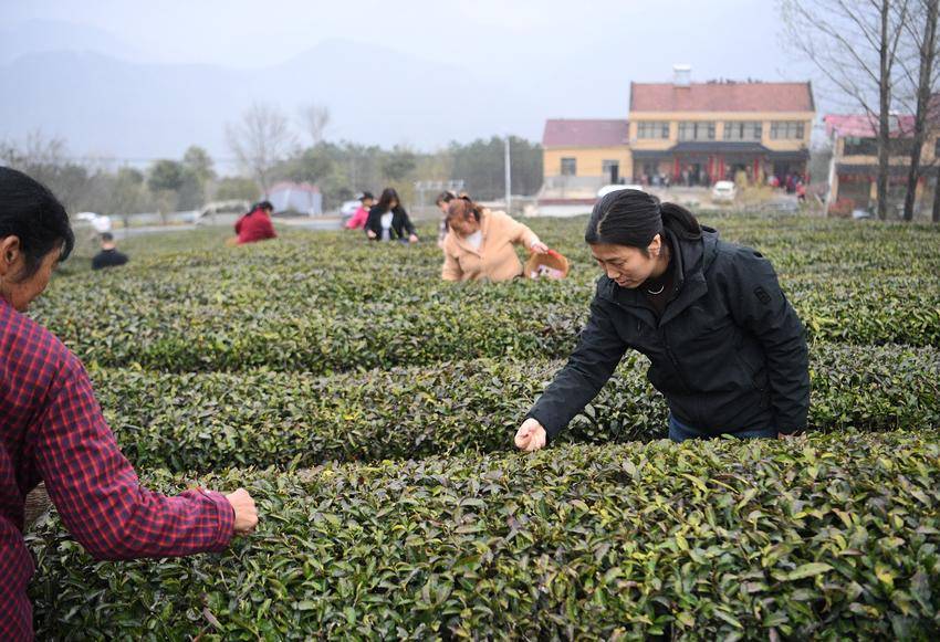 ▲▼3月26日,在保康县马良镇溪峪村茶园,茶农在采摘“明前茶”。