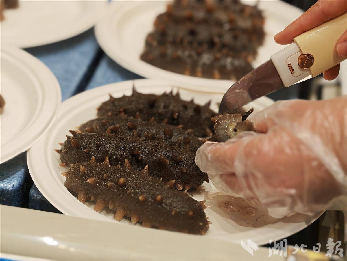 参展商现场制作海参。(湖北日报全媒记者杨然摄)