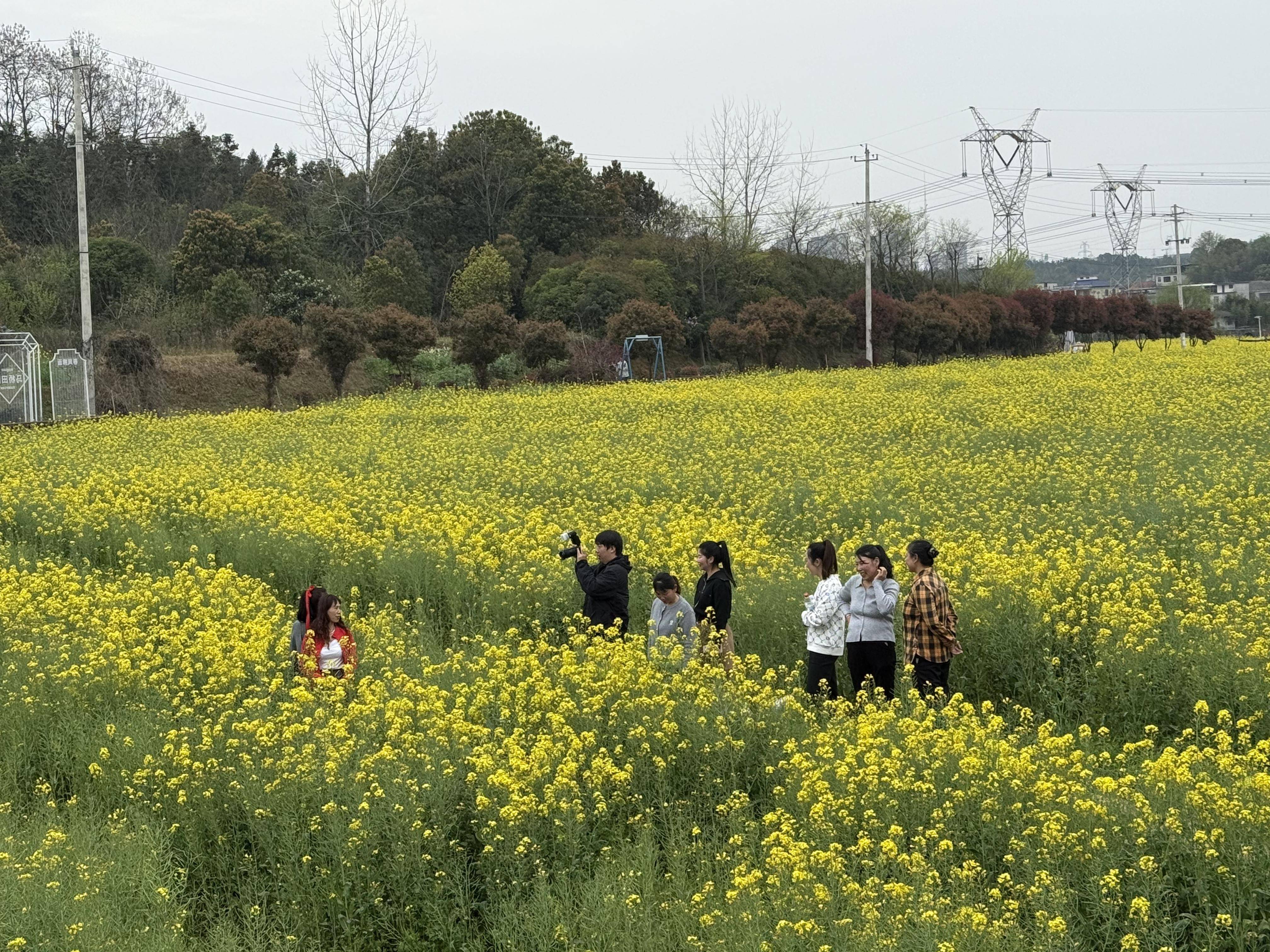花海各处的打卡点同样人气高涨,游客们或依托花海中的指示牌、景观造型拍照留念,或与非遗表演道具、市集摊位合影打卡,将春日花海的浪漫与活动的乐趣完美融合。“早就听说这里的油菜花海特别美,特意带着家人过来,能穿着汉服在花海中拍照,既能定格美景,又能留下专属纪念,太贴心了。”来自武汉的游客李丽芳笑着说道。