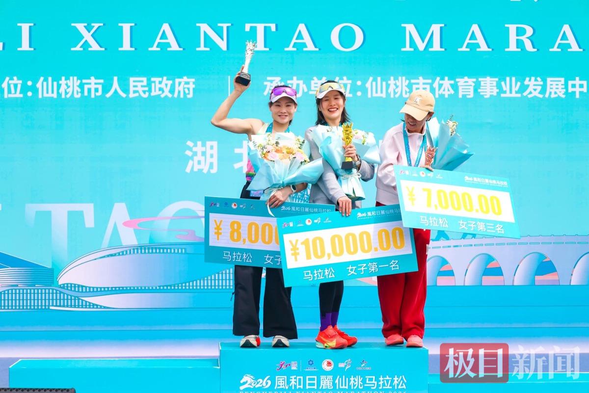 经过激烈角逐,女子半马冠军花落本地选手尹亭。她曾斩获2025年黄冈半马女子组冠军,今年更是带伤坚持出战。“我只想拿名次,捍卫主场,不在乎真实成绩如何。”赛后她激动地与家人拥抱,分享喜悦——在家乡的马拉松赛道上,她圆了梦,取得了最优异的成绩。