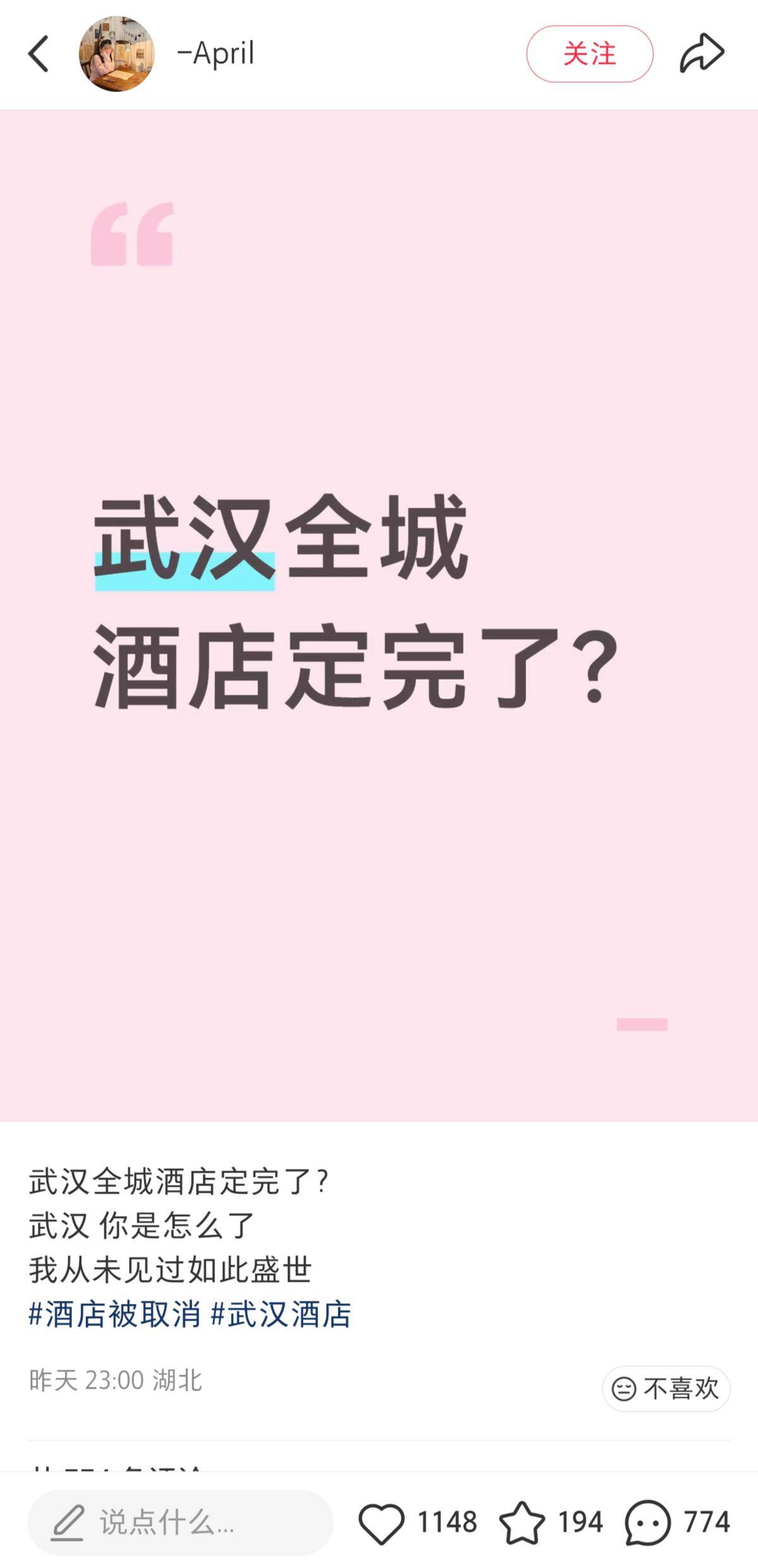 湖北日报讯(记者冯袁玥)“武汉全城酒店都订完了?我从未见过如此盛世!”3月28日晚11点,网友“April”在小红书上发的这条感叹帖,短短一天内便引来700多条“同感”跟评。不少网友惊呼:“啊?武汉现在这么火吗?”