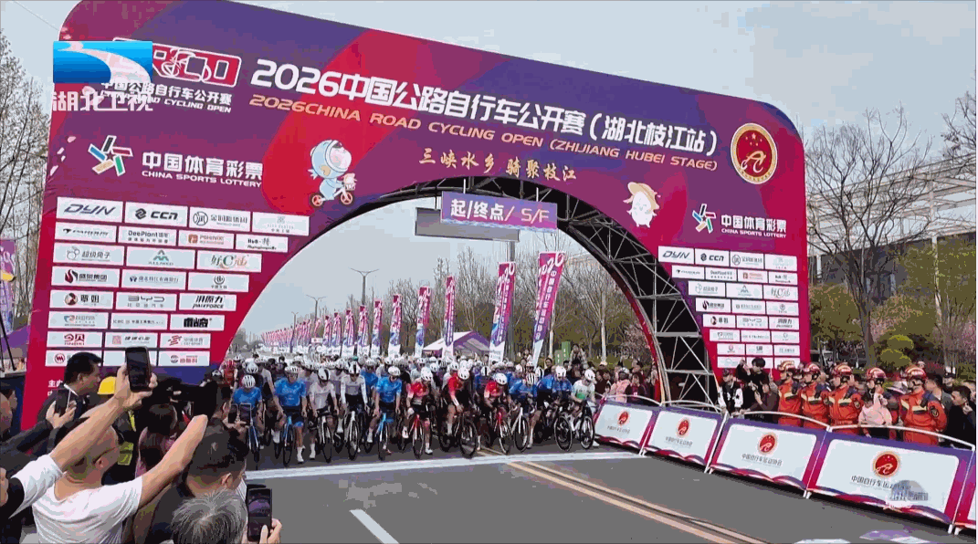在长江之畔,2026中国公路自行车公开赛激情开赛。随着一声鸣枪,选手们从“四馆一中心”出发,开启了一段“骑遇”三峡水乡的精彩之旅。值得一提的是,赛道旁一座高4米、宽10米的绣球花墙成了“网红打卡点”。
