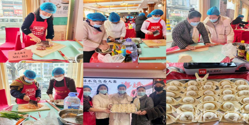 比赛分为“基础竞技”与“创意创新”两大板块。在基础竞技环节,选手们各显神通,揉、擀、包、捏,动作行云流水。不一会儿,一个个皮薄馅大、形如“元宝”的经典包面便在巧手中诞生,晶莹剔透,寓意着吉祥与富贵。而在创意创新环节,选手们则大胆融合本地特色食材,在馅料搭配与造型设计上推陈出新,展现了浠水包面与时俱进的无限可能。