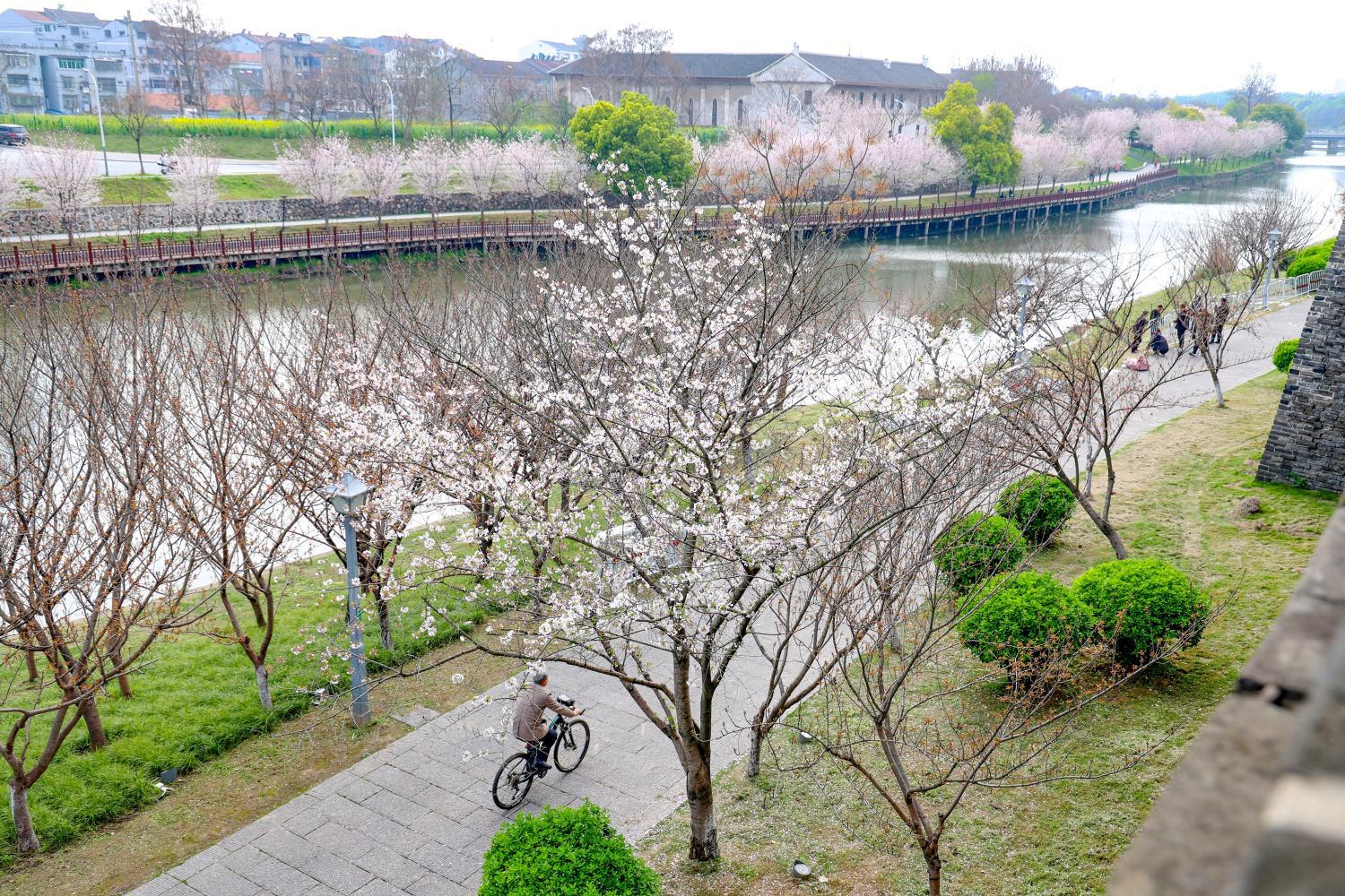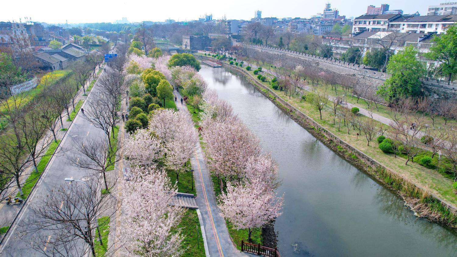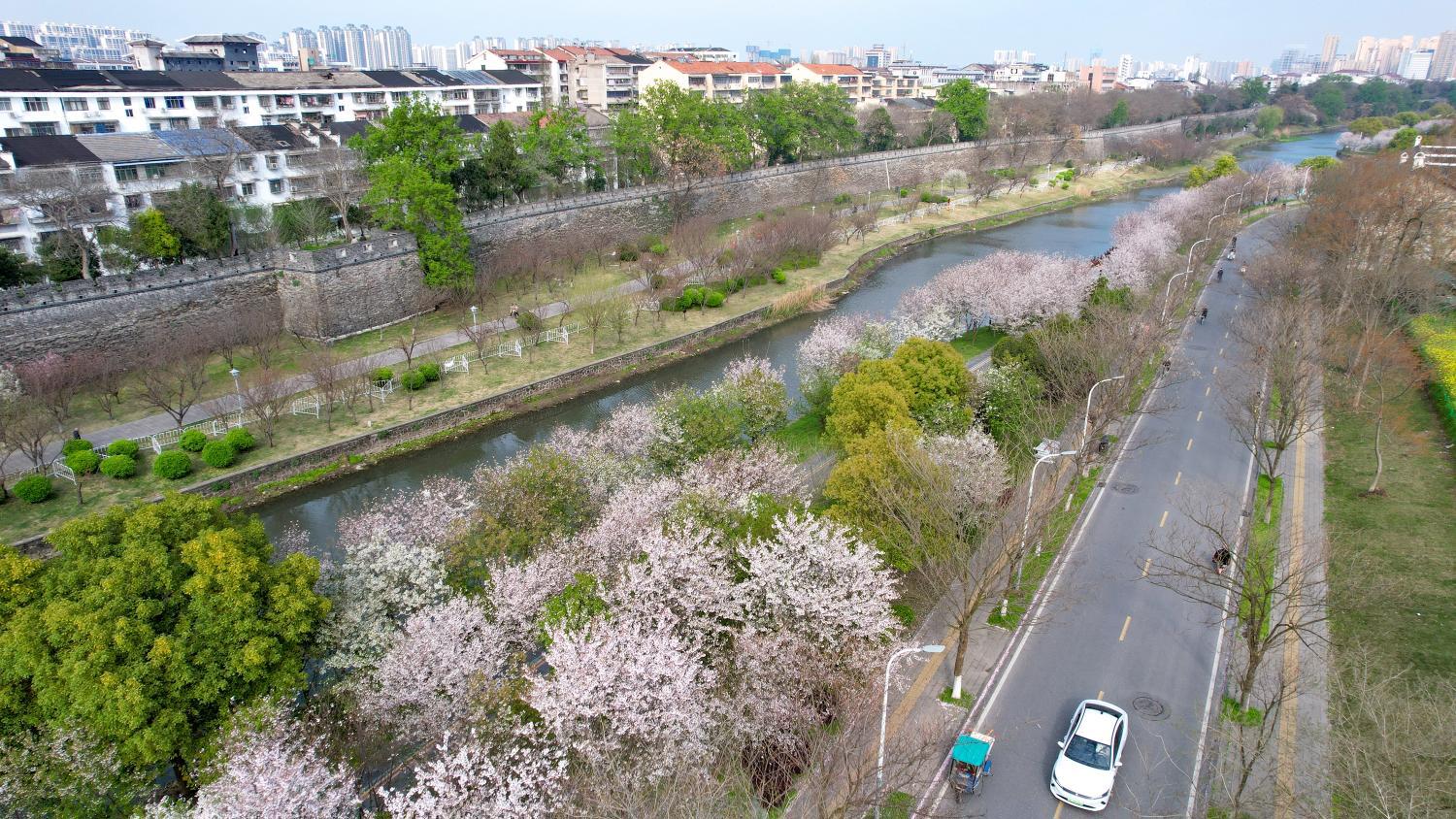 3月30日,在荆州古城老南门,粉色的樱花挂满枝头沿着河岸绽放,与古城墙交相辉映,勾勒出一幅春日限定的楚韵画卷。微风拂过,花瓣如雪飘落,为千年城墙披上一层浪漫的花纱,不少市民前来打卡游玩,感受春日美好时光。老南门樱花最佳观赏期从3月中旬持续到4月中旬,接下来这里还将迎来晚樱盛花期,这个春天,不妨带上家人朋友来这里感受历史与自然交融的美景吧。