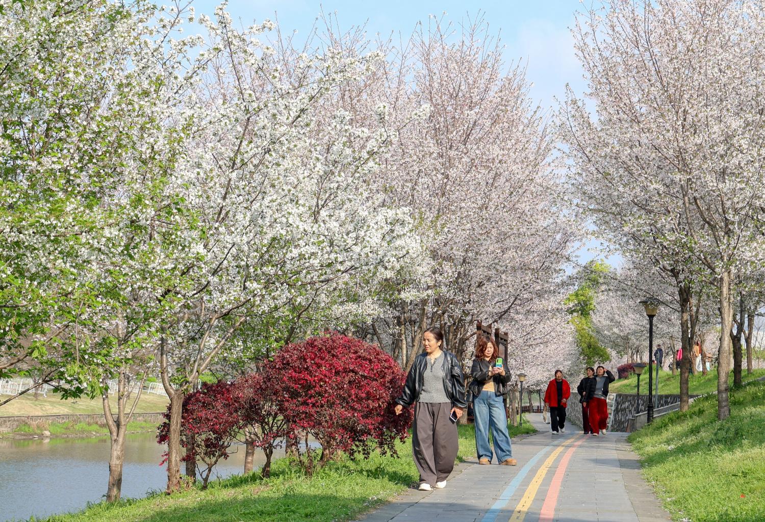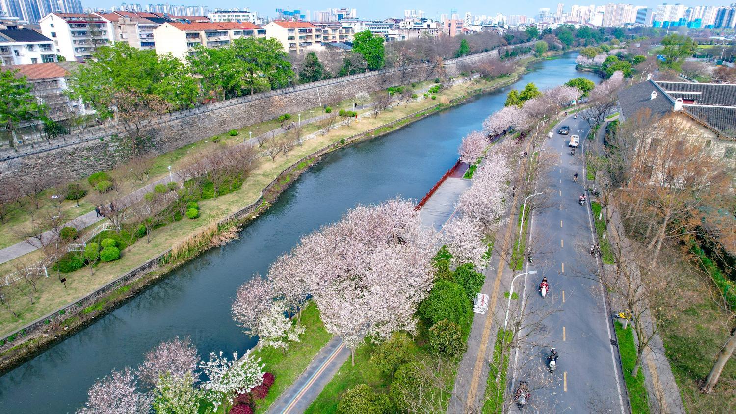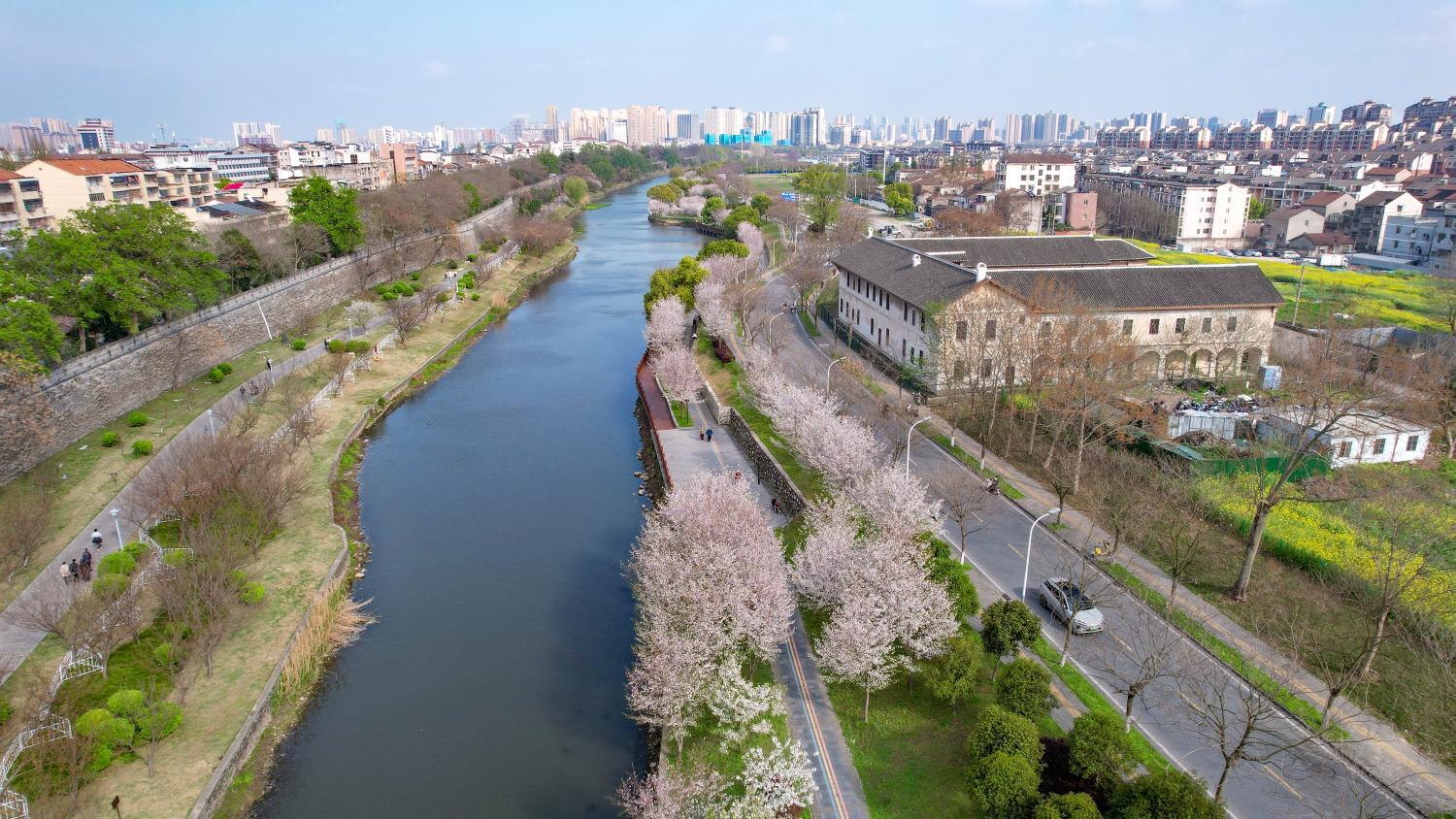 3月30日,在荆州古城老南门,粉色的樱花挂满枝头沿着河岸绽放,与古城墙交相辉映,勾勒出一幅春日限定的楚韵画卷。微风拂过,花瓣如雪飘落,为千年城墙披上一层浪漫的花纱,不少市民前来打卡游玩,感受春日美好时光。老南门樱花最佳观赏期从3月中旬持续到4月中旬,接下来这里还将迎来晚樱盛花期,这个春天,不妨带上家人朋友来这里感受历史与自然交融的美景吧。