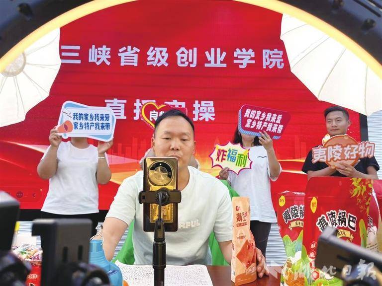 “欢迎新进直播间的宝宝们!”在醉三峡创业孵化园,退役军人肖晨希正对着镜头侃侃而谈,身后的团队配合默契,订单提示音此起彼伏。