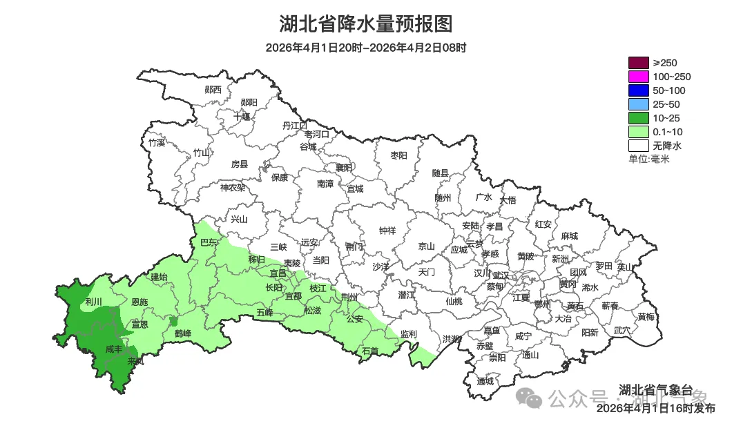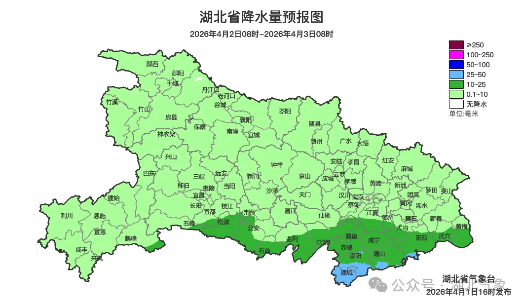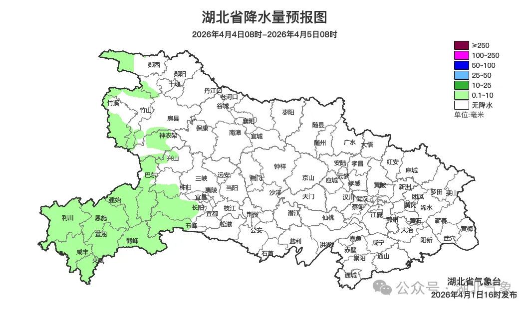 预报来源:湖北省气象台2026年4月1日16时预报