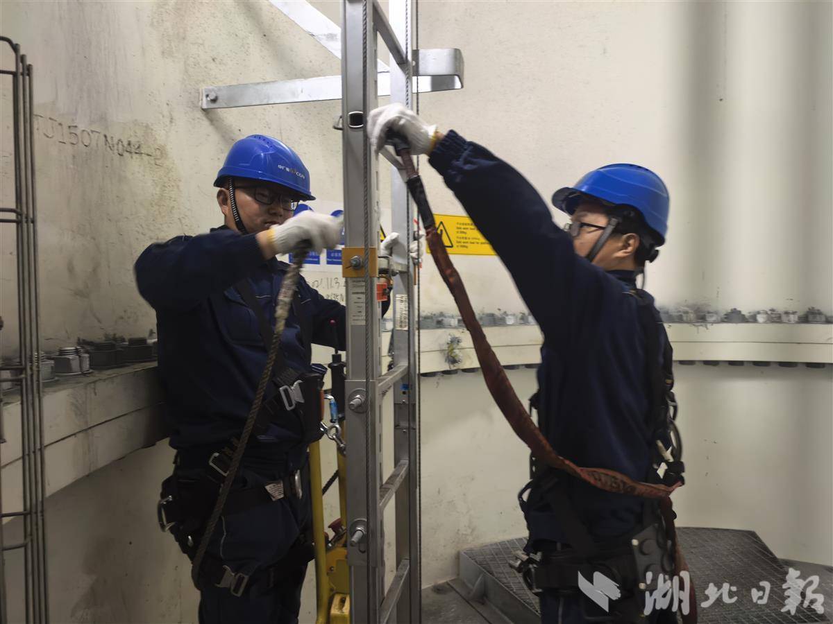 上午9时,塔底平台上,李选佳和同事们已穿戴好安全帽、安全带等全套防护装备,检测工具整齐排列。