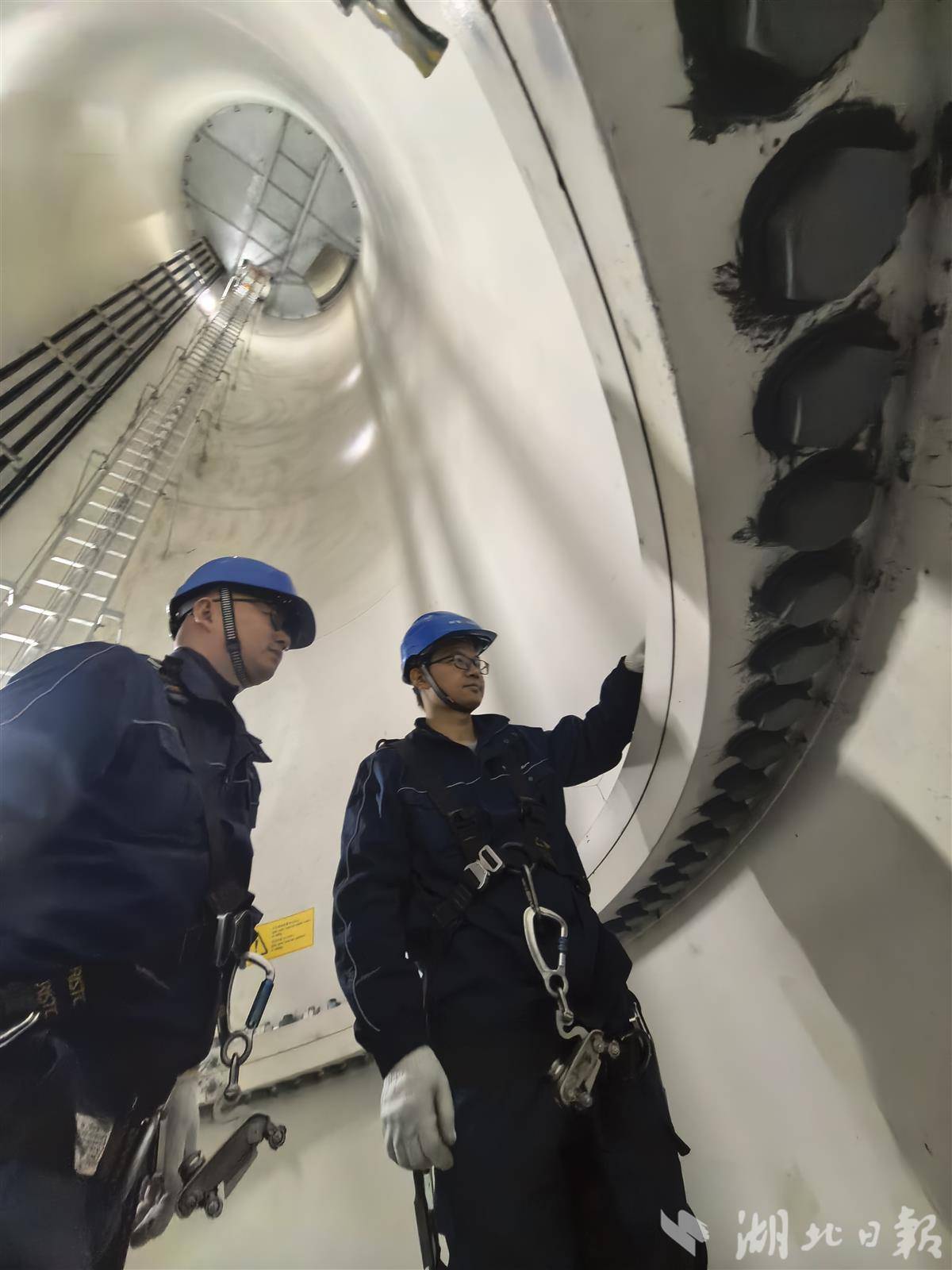 塔身内遍布密密麻麻的螺丝,李选佳和同事仔细检查每一个螺丝的紧固度。