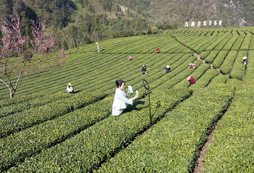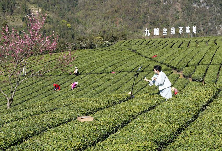 湖北日报客户端讯(通讯员王罡、朱鹏辉)眼下,春茶长势正盛,中国丝绵茶之乡湖北省宜昌市秭归县的茶农抢抓农时采摘明前茶,加工后通过电商供应市场,忙碌的身影与春意盎然的茶山共同构成一幅美丽的画卷。