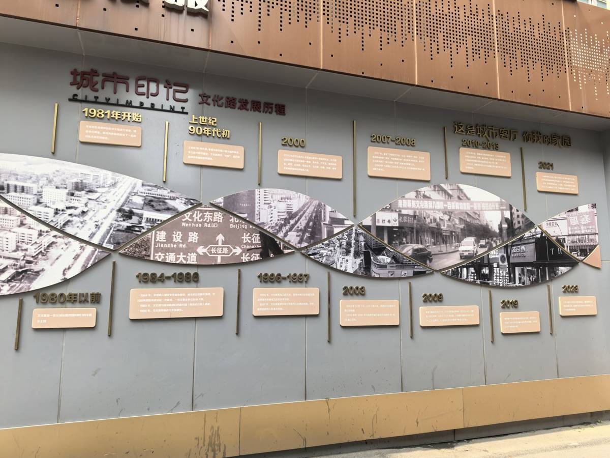 孝感文化路旁的发展历程展示牌。(湖北日报全媒记者王孝武摄)