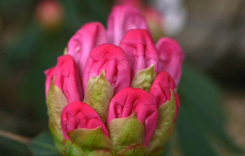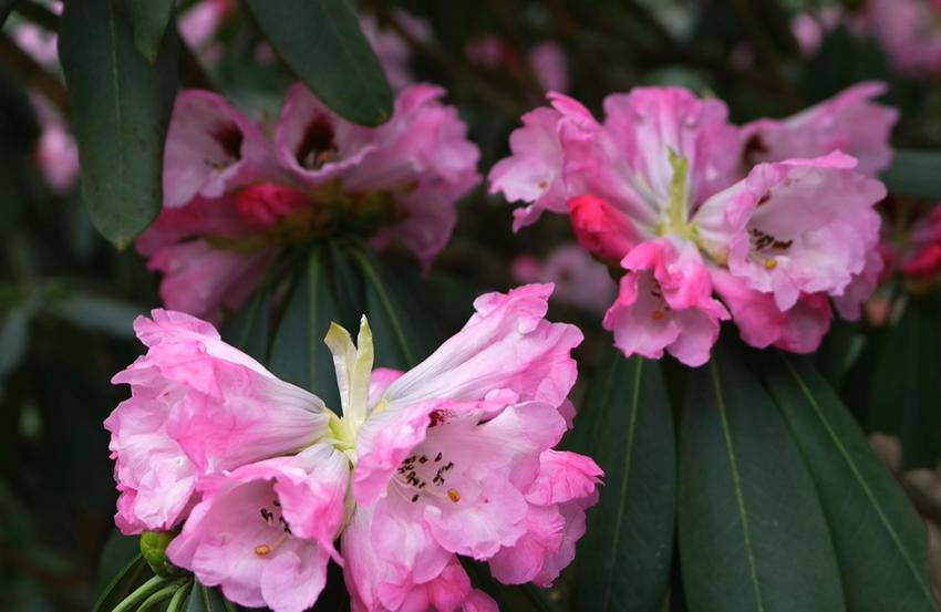 云锦杜鹃每年7月开始孕蕾,历经整个秋冬季节的蛰伏积蓄,直到次年春季才悄然绽放。