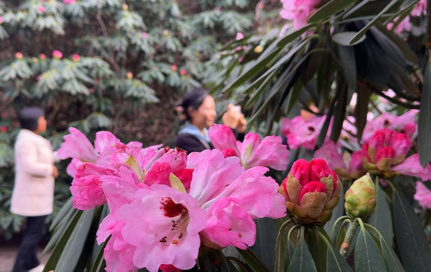 “今年春季气温回升平稳,降水充沛且空气湿度适宜,为花苞的孕育与膨大提供了绝佳条件,使得今年的花苞总量较往年增加了三成以上。”歇马镇合作村党支部书记李守泽介绍,千家坪云锦杜鹃观赏区面积有5000多亩,清明节前后进入盛花期,花期大约持续20天。