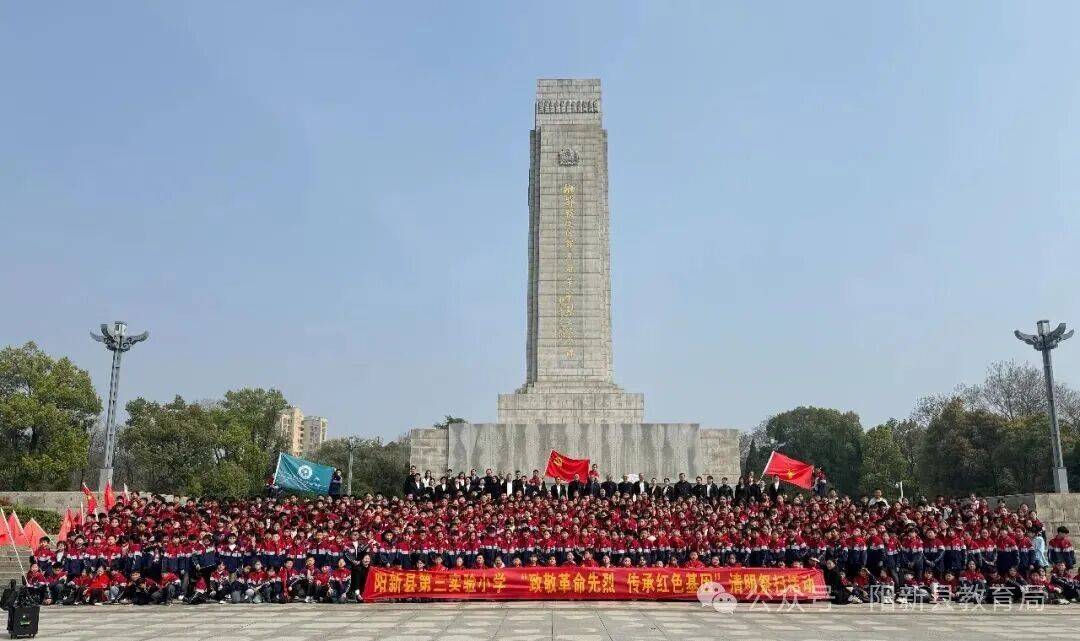 3月25日,阳新县第三实验小学500余名党员教师与五年级师生徒步走进湘鄂赣边区鄂东南革命烈士陵园,开展“致敬革命先烈传承红色基因”清明祭英烈活动。出旗、奏唱国歌、讲述烈士事迹、重温入队誓词……一项项仪式庄重有序。少先队大队辅导员董鑫鑫表示,要将对英烈的缅怀转化为育人动力,用孩子们听得懂的语言讲好阳新本土的英雄故事。
