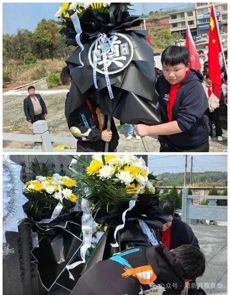 浮屠镇荻田小学师生前往浮屠镇革命烈士陵园,少先队员代表敬献花篮,全体师生默哀追思,少先队辅导员勉励全体师生以先烈为榜样,在新时代勇担使命。三溪镇中心小学118名学生及教师代表前往三溪镇烈士陵园,同学们手持自制小白花与鲜花,在少先队队旗指引下有序行进,在烈士纪念碑前肃立默哀,聆听烈士故事,感悟初心力量。