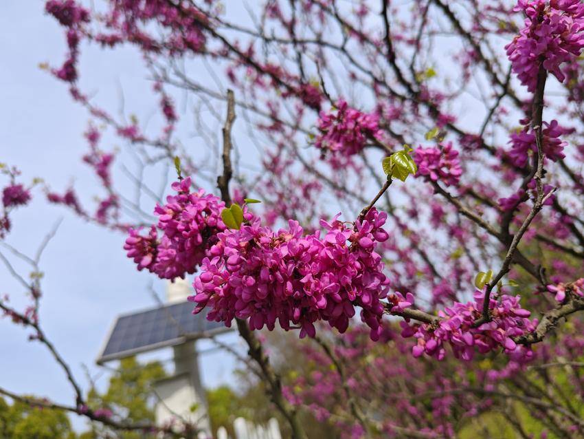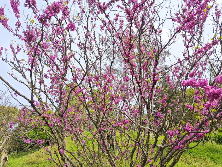 “唯有牡丹真国色,花开时节动京城。”紫薇林内,盛开的牡丹雍容华贵,红粉相间,层层叠叠绽放在绿意之间,尽显端庄大气。与之相映成趣的是繁茂如云的紫荆花,细密的花瓣簇拥成片,灿若云霞,将整片山林装点得如梦似幻。春风拂过,花香四溢,蝶舞蹁跹,令人流连忘返。