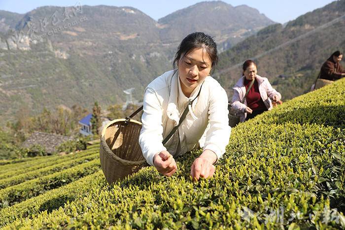 湖北日报客户端讯(通讯员陈祥楚)4月8日,巴东县金果坪乡沙岭茶业基地,茶农们在茶垄间,忙碌采摘茶叶。