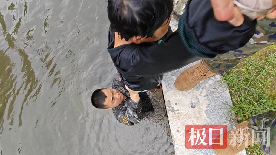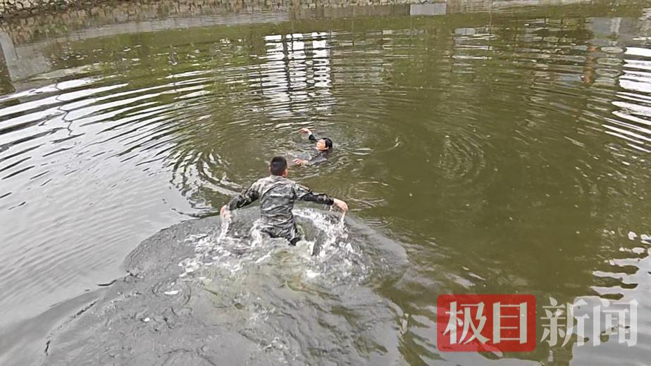 现场情况危急,两人当即分工展开救援。水性较好的陈森毫不犹豫跳入河中,王正军则迅速拨打110报警,并向所在中队报告情况。