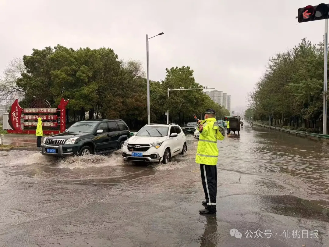 预报即是预警,雨情即为警情。仙桃公安依据实时天气状况,迅速启动应急管控预案。交通管理大队430名警力全员上阵,在仙桃大道大洪路口、黄金大道钱沟路口等易涝点位提前布防,根据积水深度分级落实“警示、限行、封控”管理措施,化身“推车侠”冒雨救助抛锚车辆。