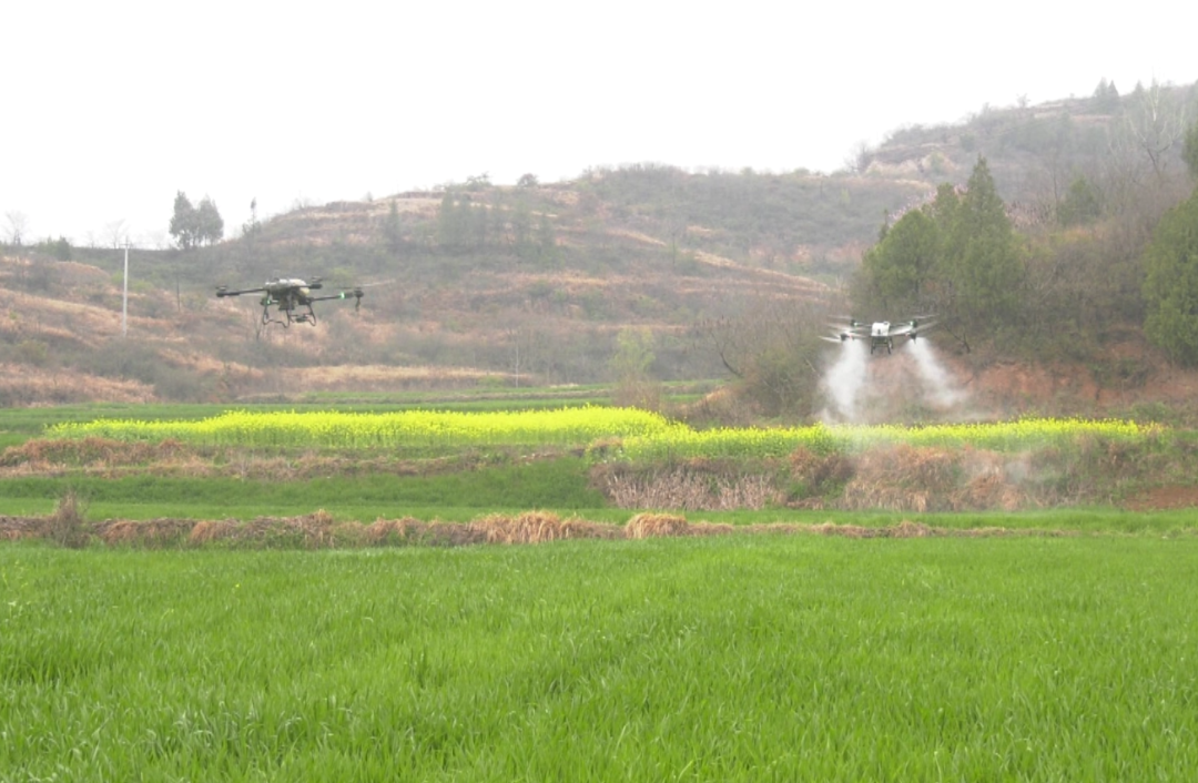 日前,趁着天气利好,郧阳区安阳镇李营村种植大户王波将两台植保无人机运至麦田间,轻点屏幕,植保无人机按照设定流量,将农药精准喷洒到小麦上。王波说,现在有了先进设备,田间管护特别方便。以前用人工进行打药施肥,要四五个人,一个星期才能完成,现在有了农用植保无人机,只需要半天时间,就能完成打药施肥,效率大大提高了。