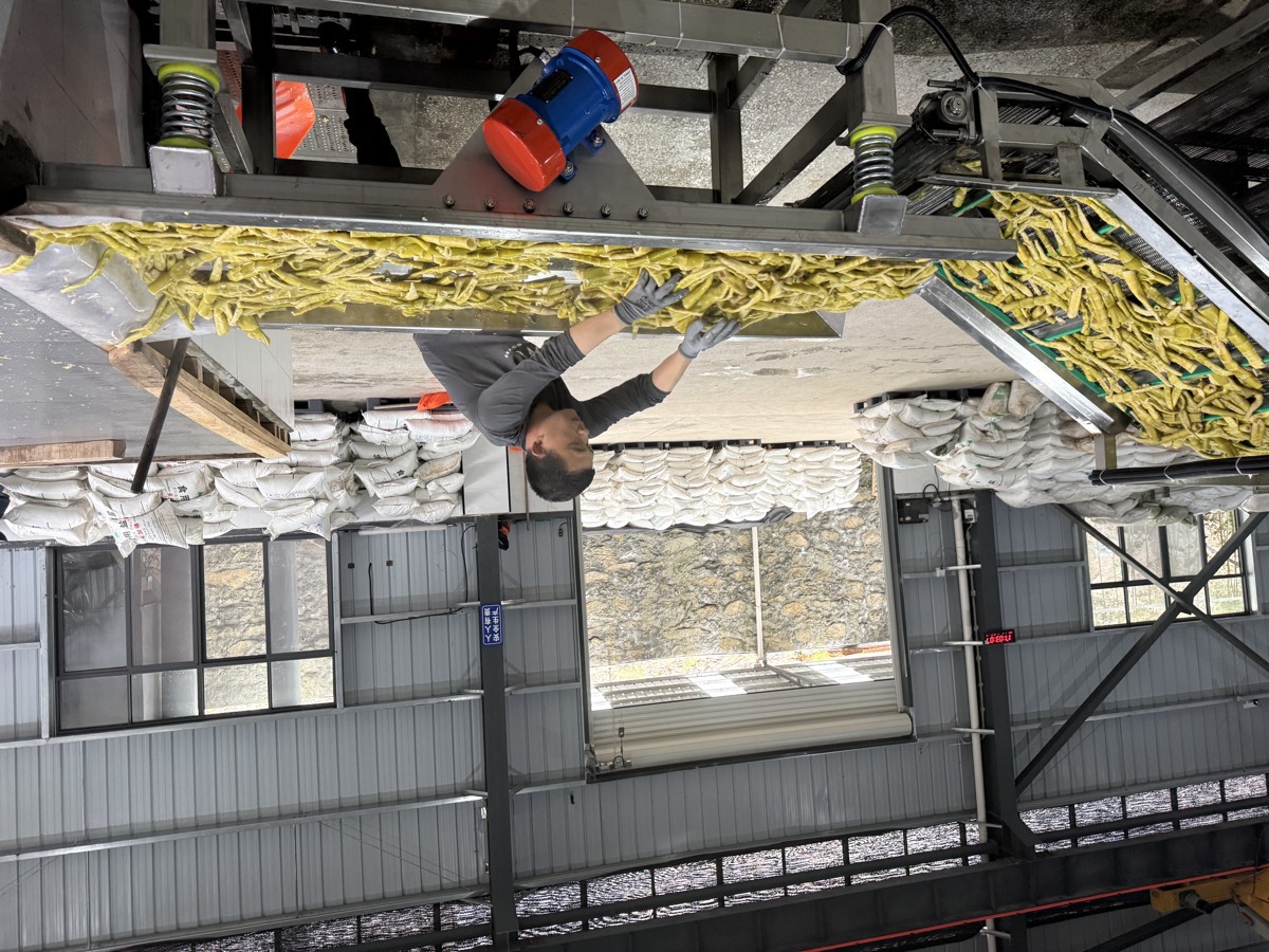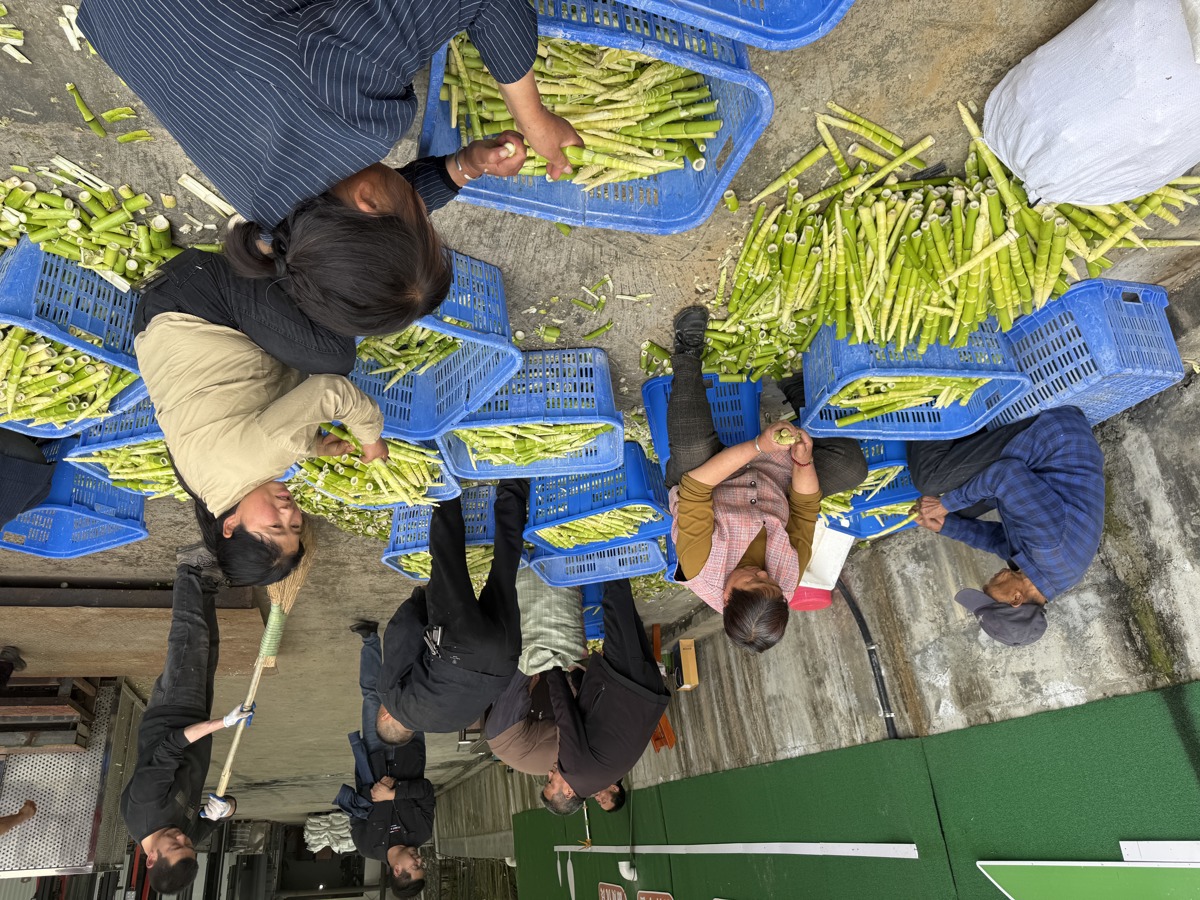 笔者在位于竹山县官渡镇瑞农农业开发有限公司收购点看到,村民们背着新鲜竹笋排队送售,工作人员有序进行打包、称重。村民曹平兴奋分享:“今天卖了200斤笋子,收入400多元。”与此同时,加工坊内热气腾腾,工人们正将鲜笋清洗、焯水、腌制、烘干,制成可长期储存的干笋产品,显著提升附加值。