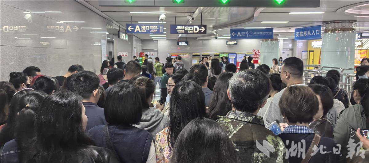 4月11日下午5点多,离演唱会开场还有近两小时,地铁3号线体育中心站已汇集大量歌迷、粉丝排队等待出站。