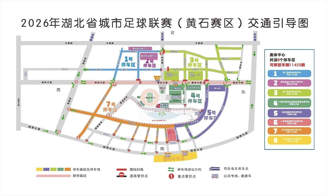 4月12日,湖北省城市足球联赛(黄石赛区)交通指引图。(来源:黄石发布)