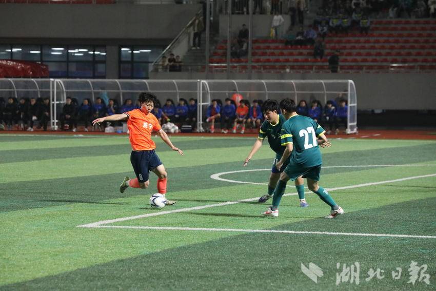 当晚19:30,随着哨声响起,比赛正式打响。绿茵场上,咸宁队迅速进入状态,凭借默契的中场联动、流畅的传切配合和积极主动的进攻节奏,牢牢掌握场上主动权,多次向潜江队球门发起猛烈攻势,创造出多个极具威胁的破门机会;潜江队则沉着应对,依托稳固的防守体系顽强抵御,同时抓住反击机会寻找破门突破口,双方你来我往、攻防交错,场面紧张激烈。