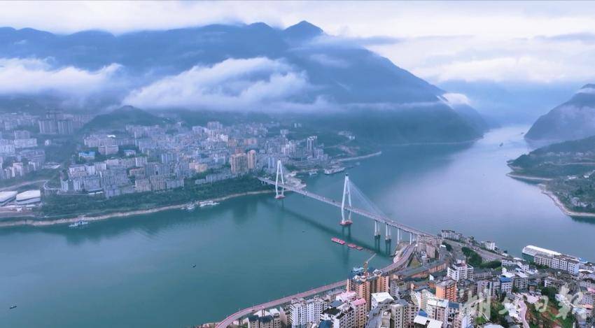 雨霁初晴,一江碧水穿城而过,澄澈的江面倒映着两岸青山。巴东长江大桥宛若长虹卧波,在薄雾中勾勒出灵动的弧线。远山被云海环绕,云雾时而翻涌漫卷,时而轻笼楼宇,将山城晕染成一幅意境悠远的水墨画卷。江面上,舟楫缓行,碧波荡漾,为静谧的山水增添几缕烟火气息,巴东“峡江画廊”的独特魅力尽显无遗。