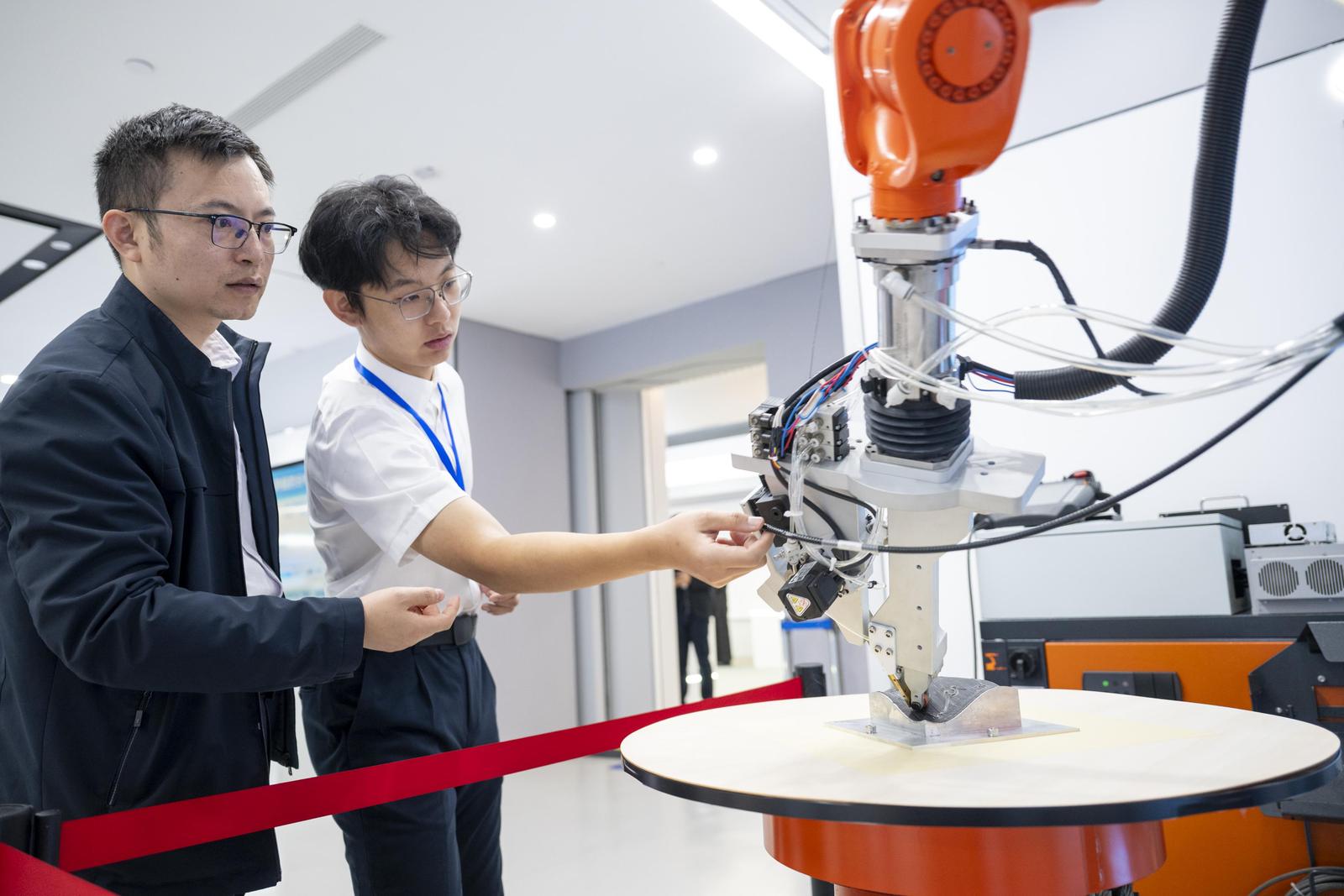 2025年11月6日,在武汉产业创新发展研究院,工作人员展示增材制造机器人。新华社记者 伍志尊 摄