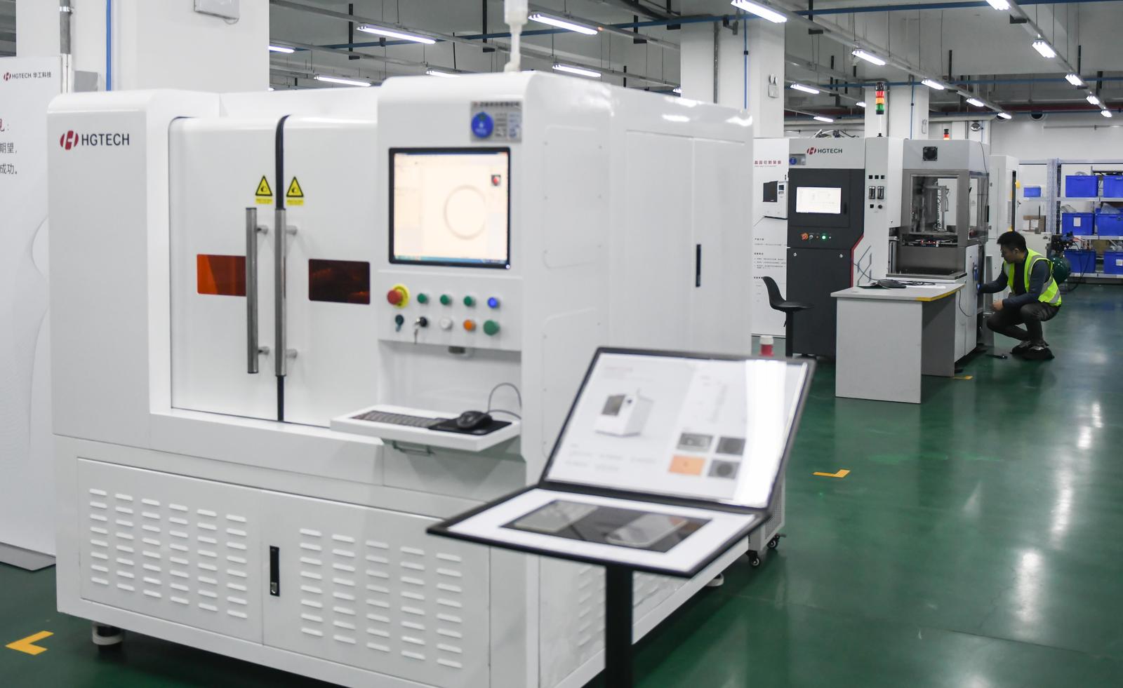 武汉华工激光工程有限责任公司员工在生产车间工作(2023年3月17日摄)。新华社记者 程敏 摄