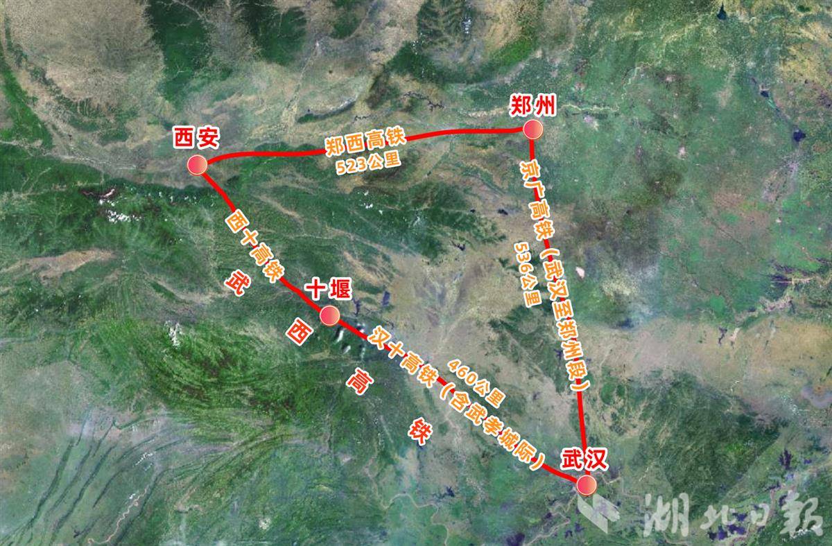 目前,武汉前往西安、西宁等地的高铁需绕行郑州枢纽。而西十高铁将与汉十高铁无缝衔接,形成武汉至西安的直达通道,比绕行郑州缩短340余公里。