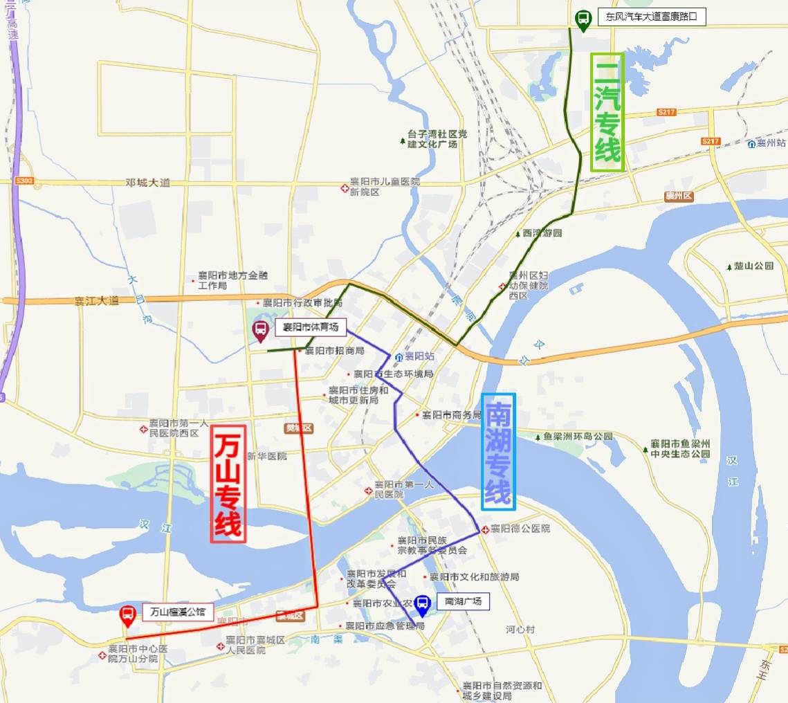 二汽专线由襄阳体育场南侧(七里河路)发车,途经清河路、清河一桥、航空路、高新区管委会,最终到达东风汽车大道富康路口,票价为3元。