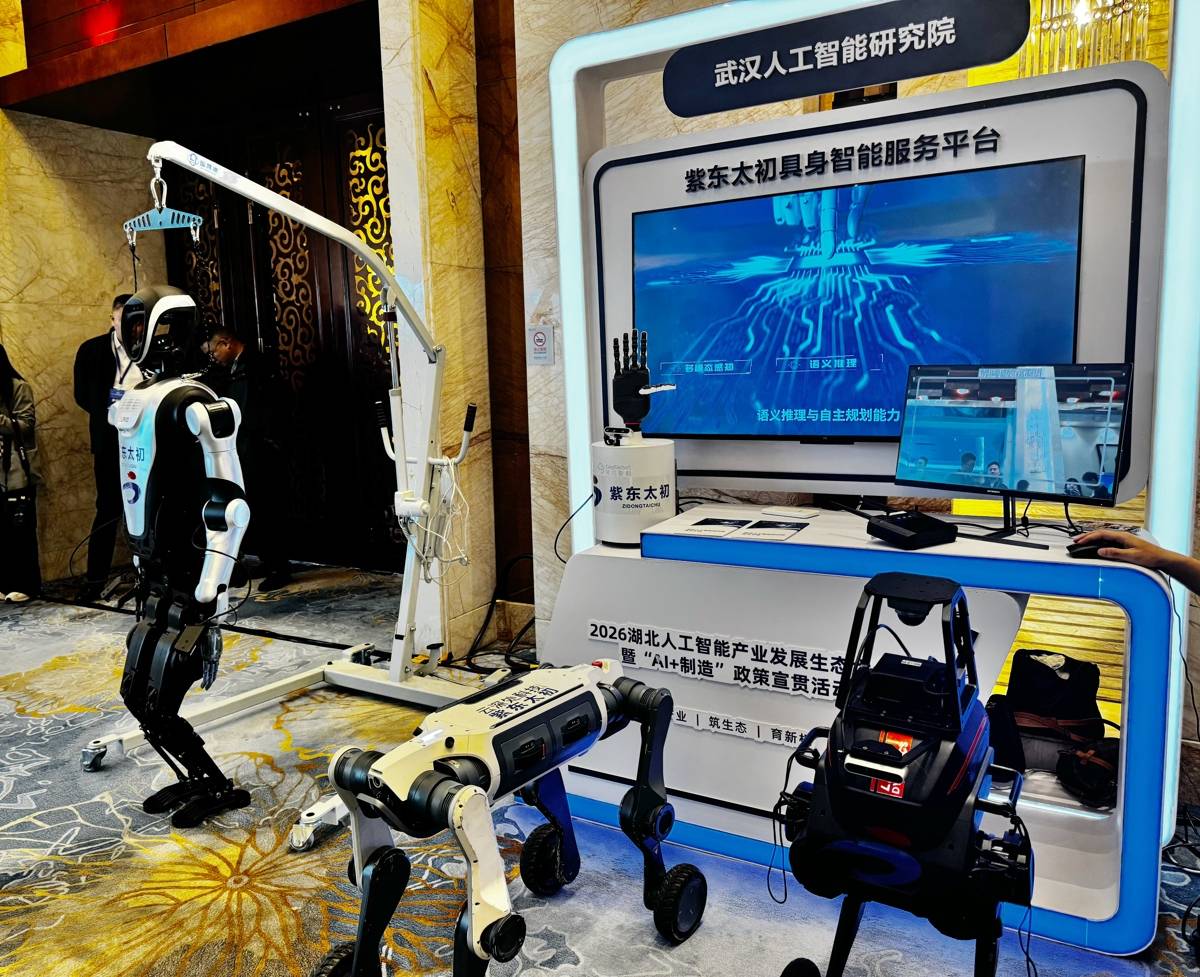 4月16日,2026湖北人工智能产业发展生态大会上,由湖北省新型研发机构武汉人工智能研究院打造的紫东太初具身智能服务平台正式发布、不同形态的机器人经该平台植入“最强大脑”紫东太初4.0后,不仅能理解“轻拿易碎物”等常识,更能在任务遇阻时反思、调整策略,高效灵活地为智能智造、医疗、教育等行业服务。