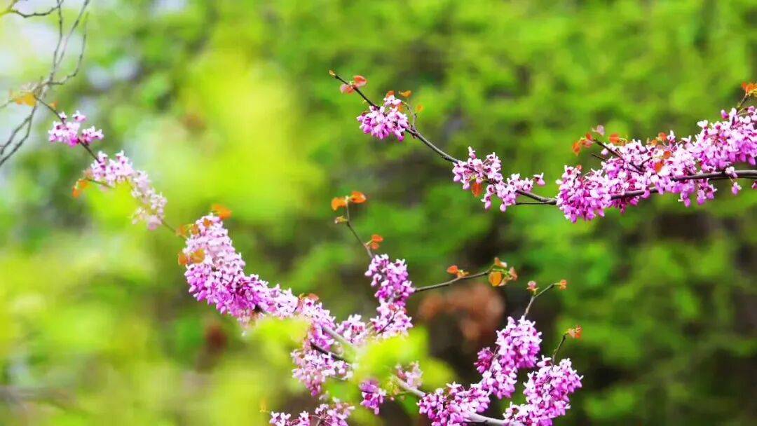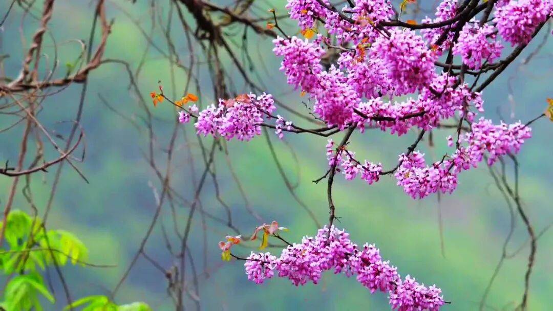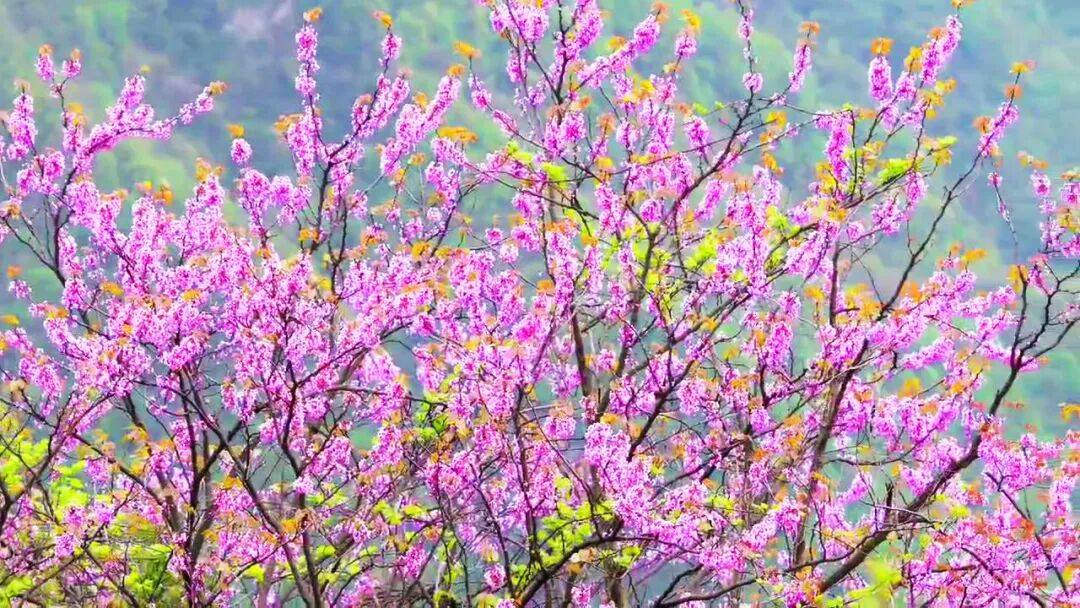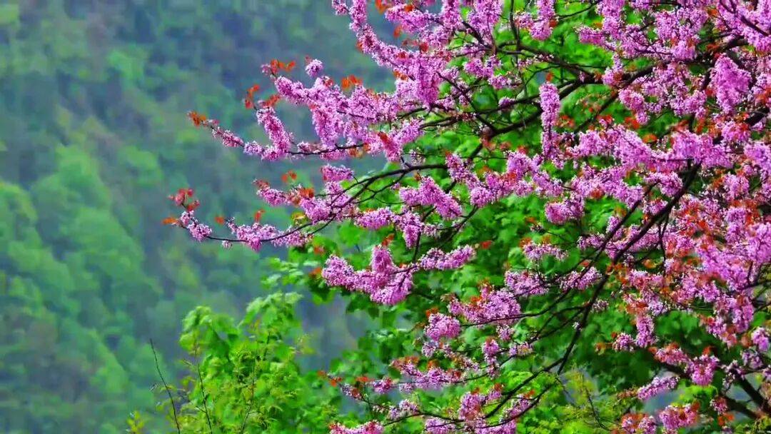 每年4月,保康各地野生紫荆花竞相怒放,依山就势、漫山遍野,如片片紫色云霞,甚为壮观,宛若一幅天然画卷。一朵朵、一簇簇、一树树紫荆花,在春日暖阳的照耀下,显得格外娇艳。漫步在花海之中,仿佛置身于一个粉紫色的童话世界。微风拂过,花瓣随风飘落,让人沉醉其中。