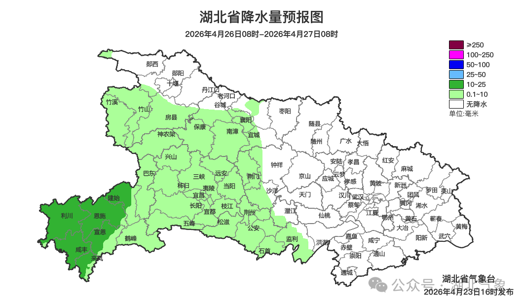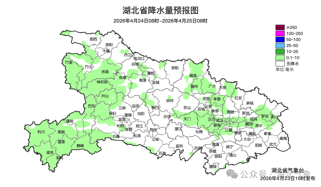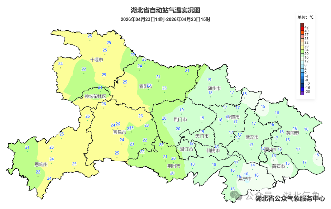 预报来源:湖北省气象台2026年4月23日16时预报